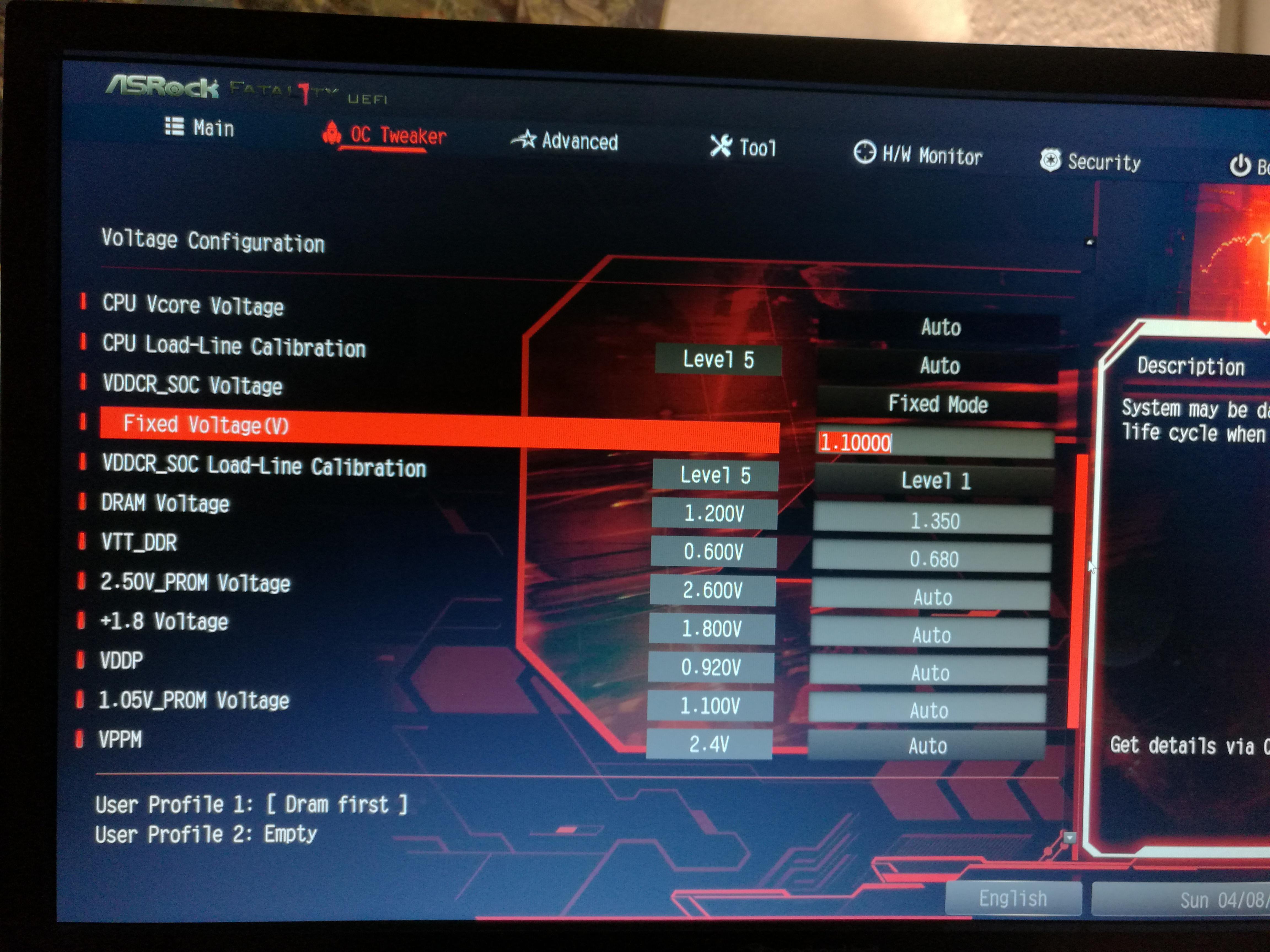 Die SOC Voltage steht auch auf 1,1 im BIOS, Soll ich den RAM wirklich nur auf 1,350 Volt lassen ?