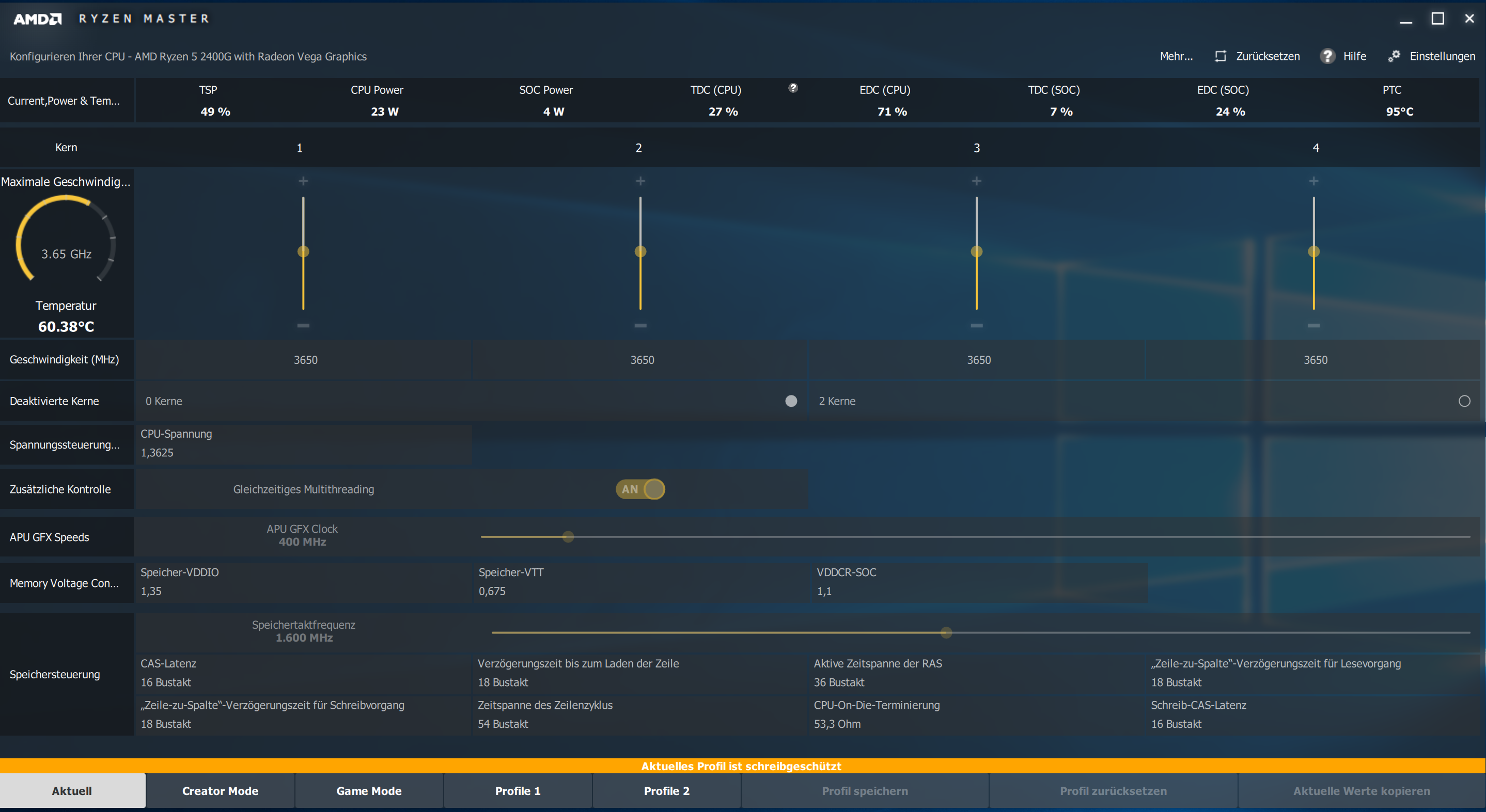 -> VCore etc getestet (leidr hier zu unerfahren -> siehe Bilder) -> durch Veränderung erzwinge ich aber eine deutliche Häufigkeit der abstürze...
