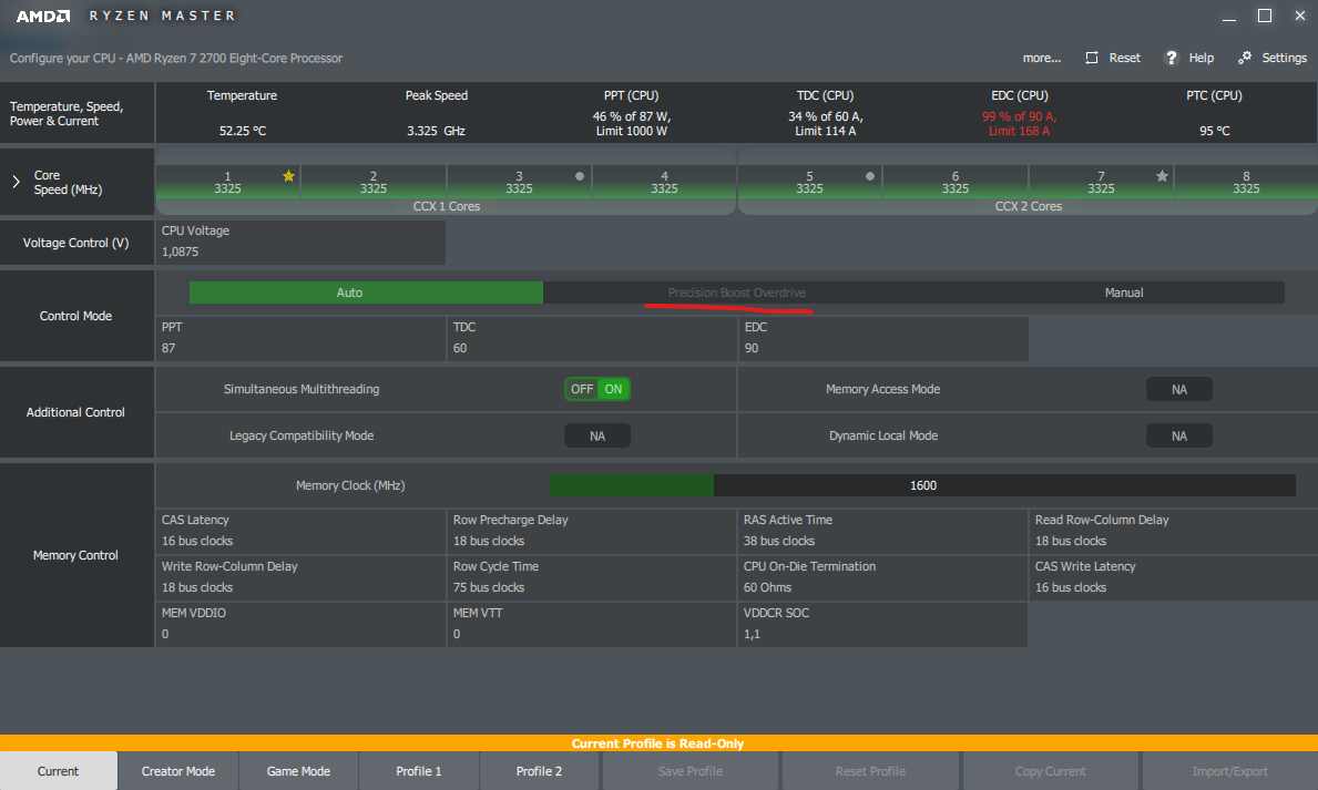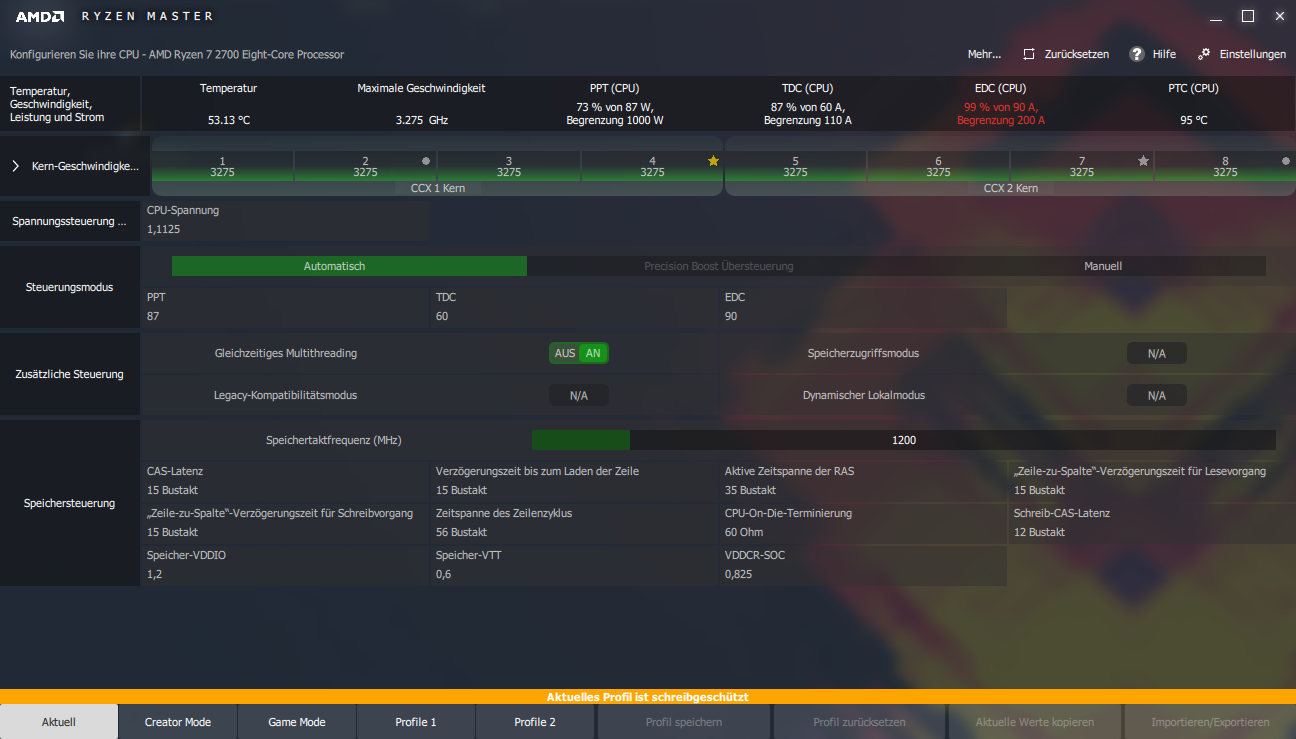 Bei Ryzen Master ist der "EDC" Wert rot: