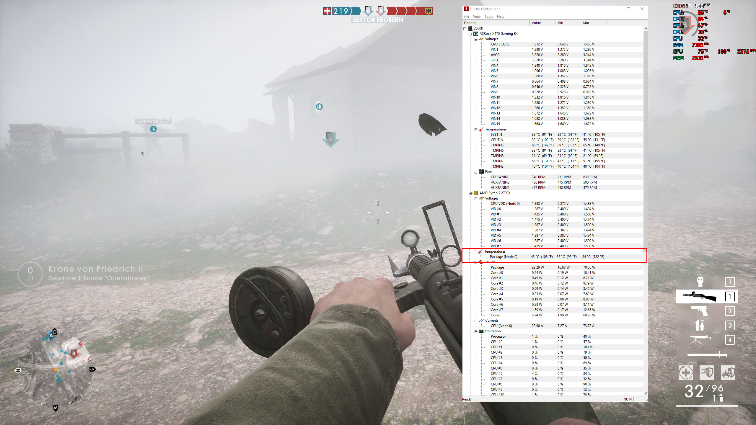 Nun musste ich aber feststellen das die Temperatur auch unter Spielen wie BF1 merkwürdig hoch sind. Bei BF1 habe ich kurzzeitig 85°C erreicht. Habe HWinfo im Hintergrund laufen lassen. Der Brocken3 läuft dann auch auf max Lüfterdrehzahl. Mit etwas über 1000 Umdrehungen.