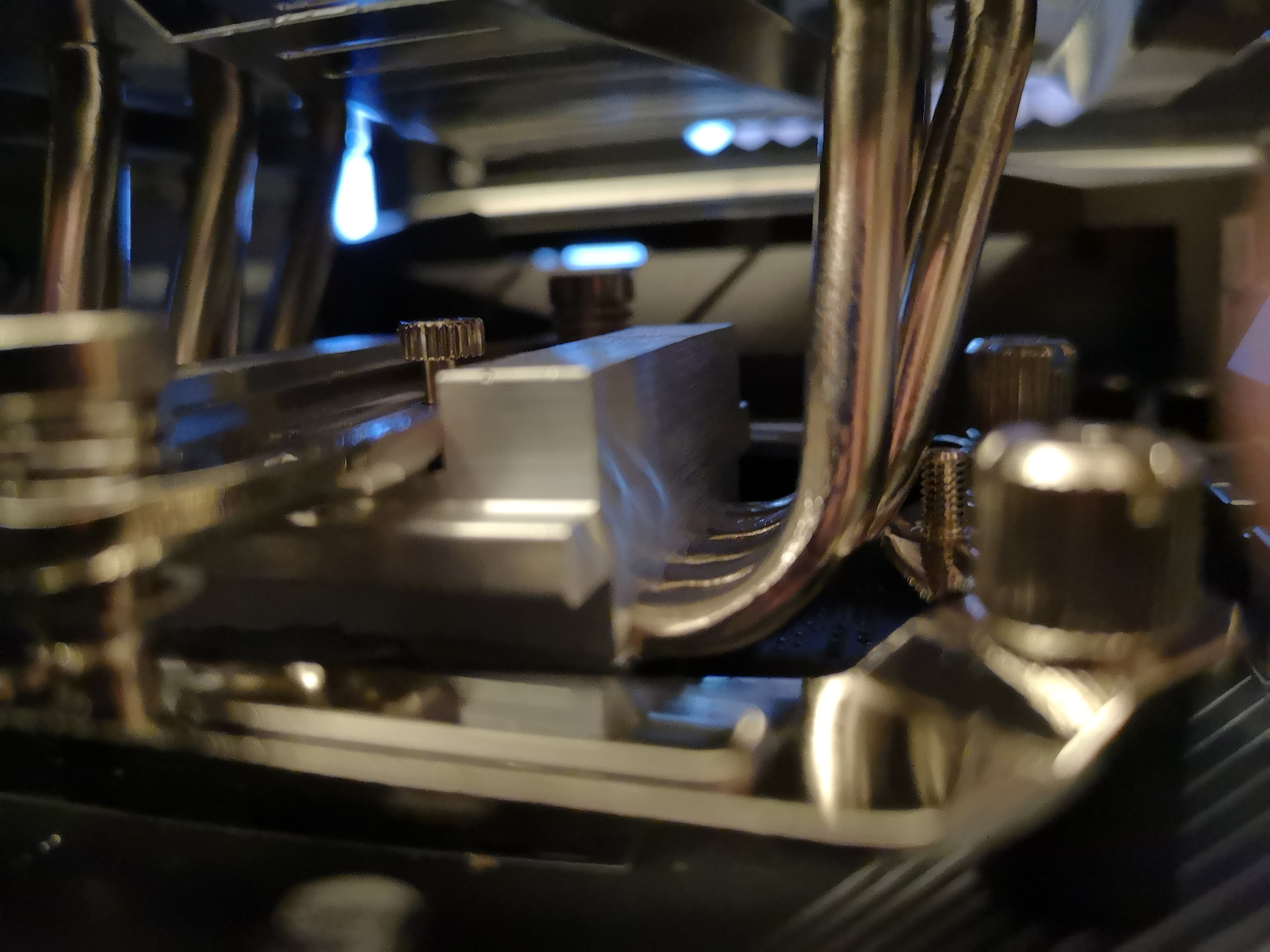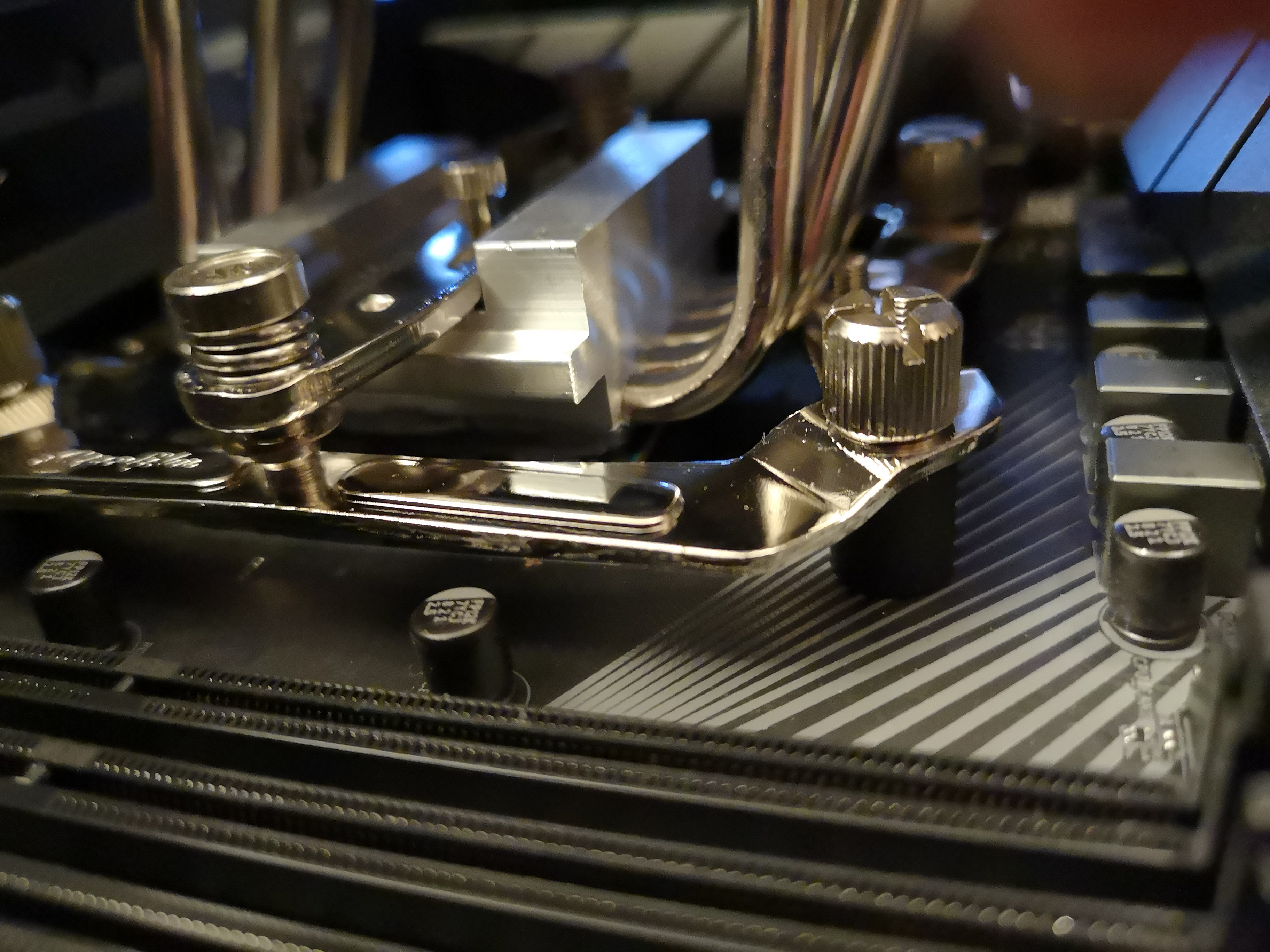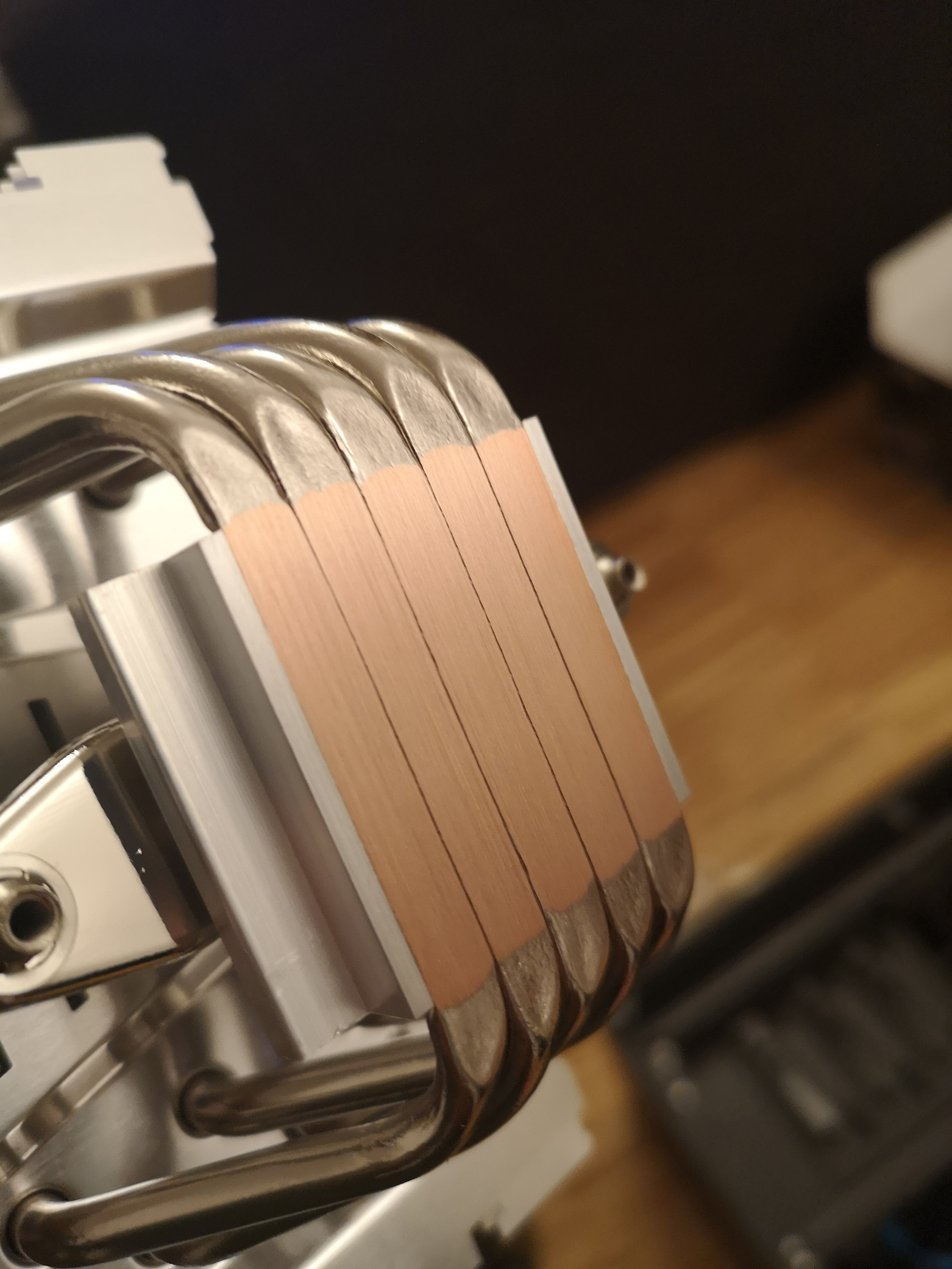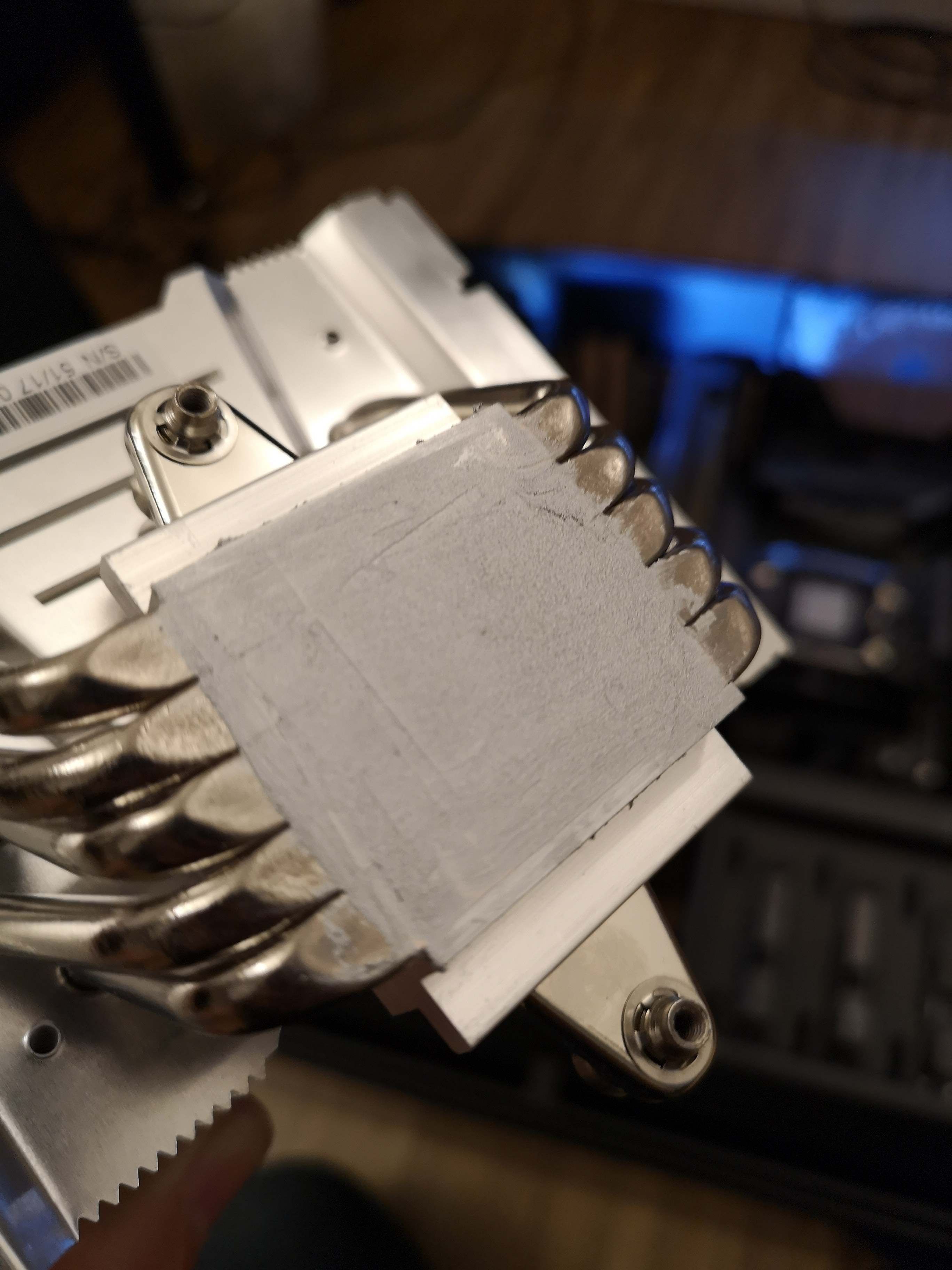 @38911 Das Bild täuscht, hier hatte ich neu Kühlpaste aufgetragen. Links und rechts liegt nicht auf, nur die Fläche die mit Paste eingeschmiert wurde hat Kontakt zur CPU. Ich hab ja nun ein paar mal den Kühler ab und wieder anmontiert. Alles ist ok. Der Anpressdruck auf die CPU ist auch in Ordnung. Nichts auffälliges.