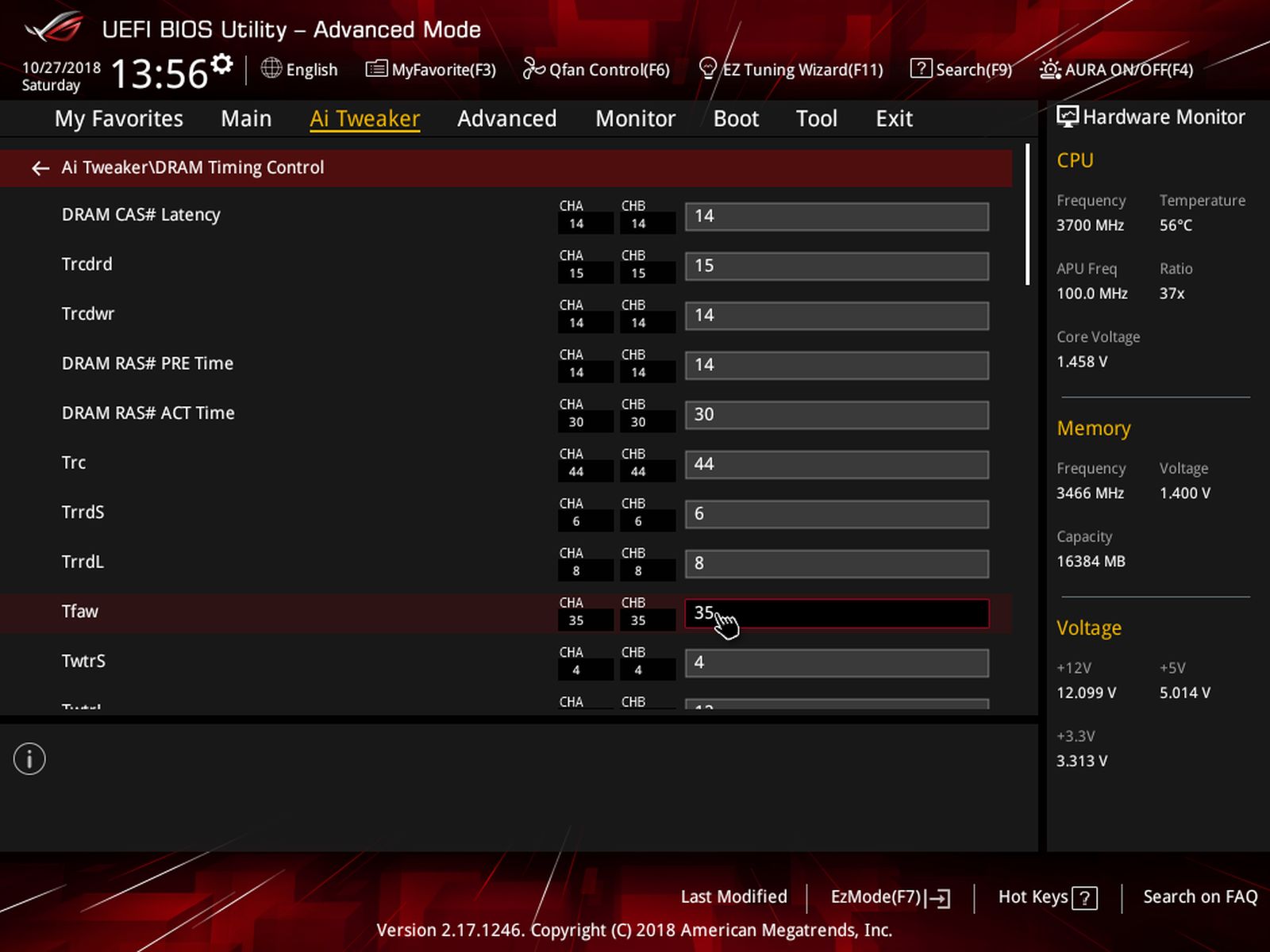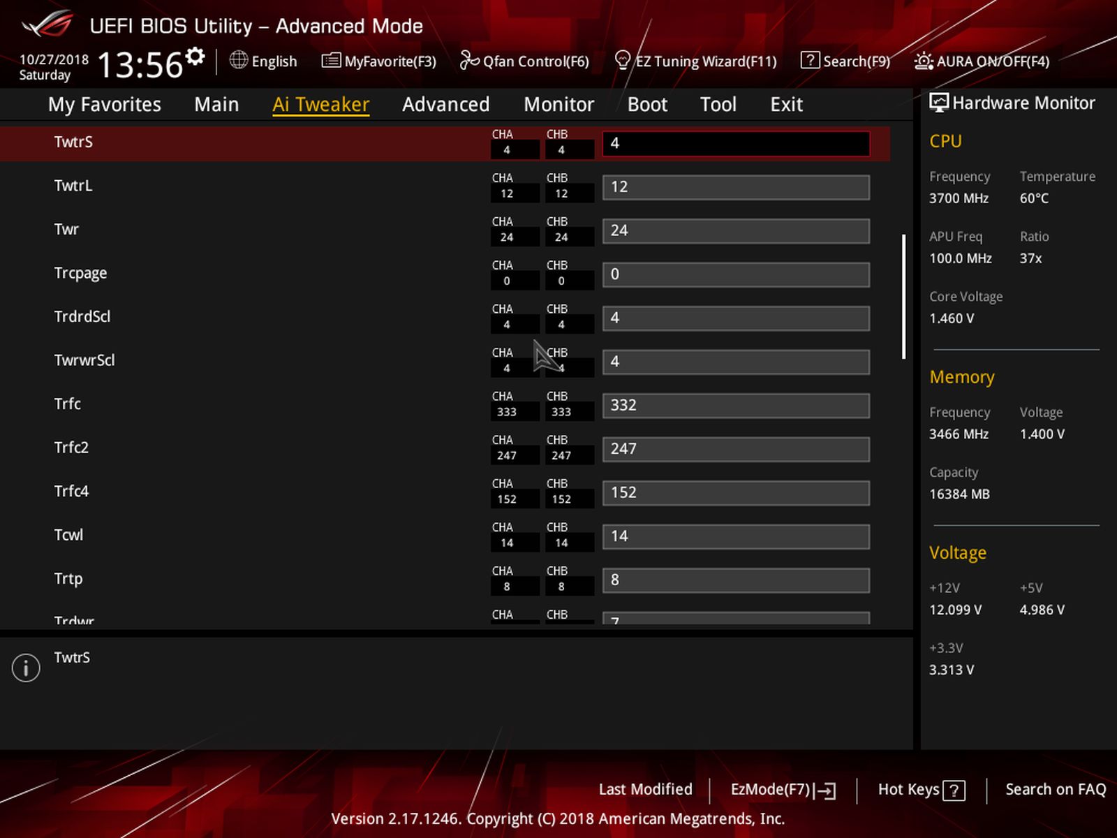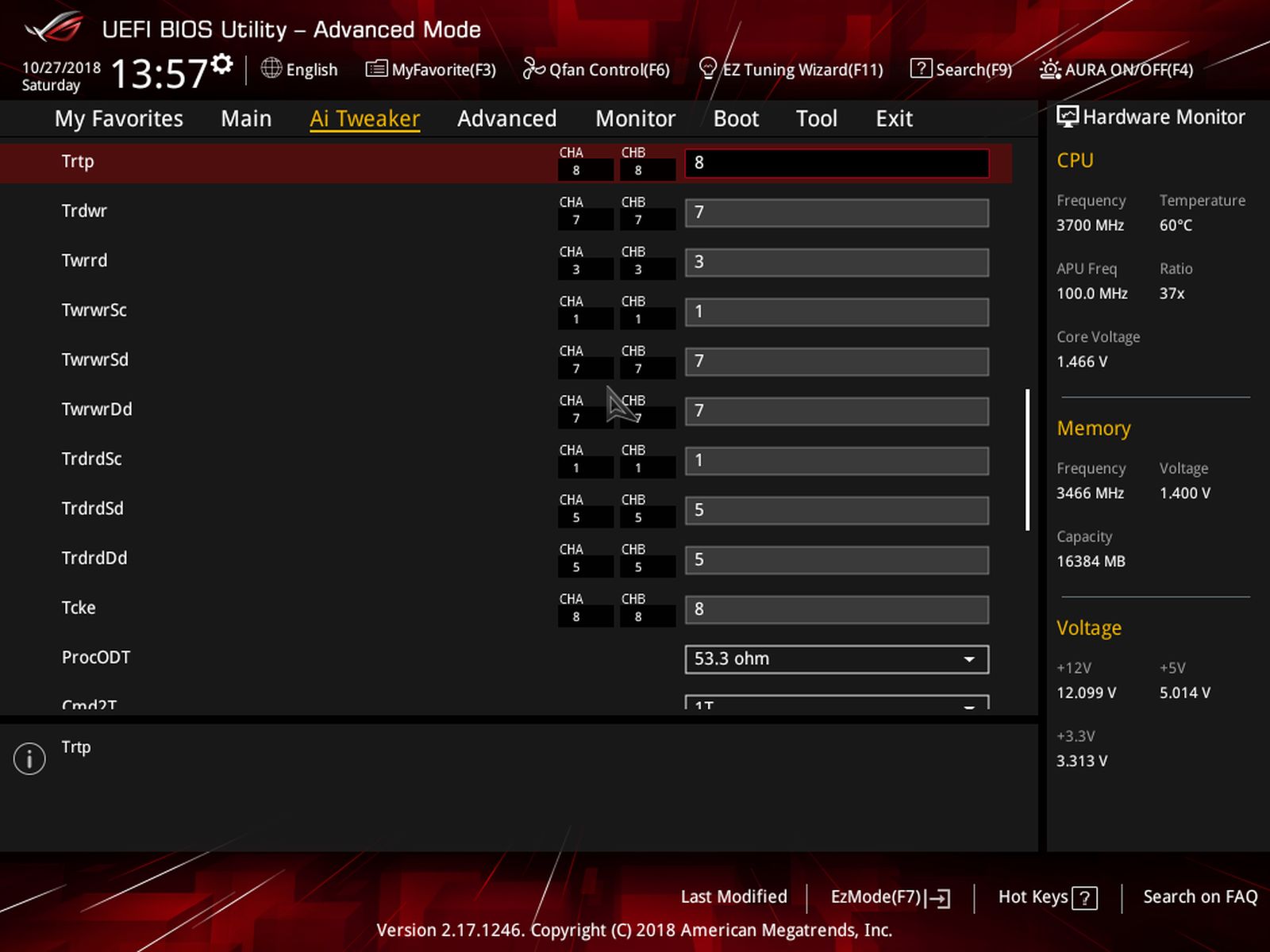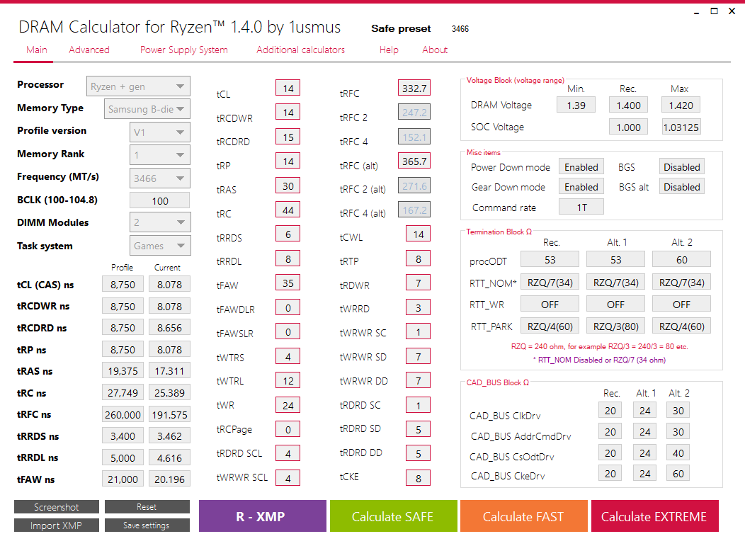 bin jetzt nach CPU Optimierung am RAM OC. Habe mal mit DRAM Calculator XMP (für 3200C14) ausgelesen und dann auf 3466 gestellt und save ausgewählt. Nach Übertragung der Ergebnisse ins Bios habe ich statt 1800 nur noch 1700-1730 Punkte im Cinebench. Im DRAM Calculator habe ich bei Task system Games statt Synthetics eingestellt.