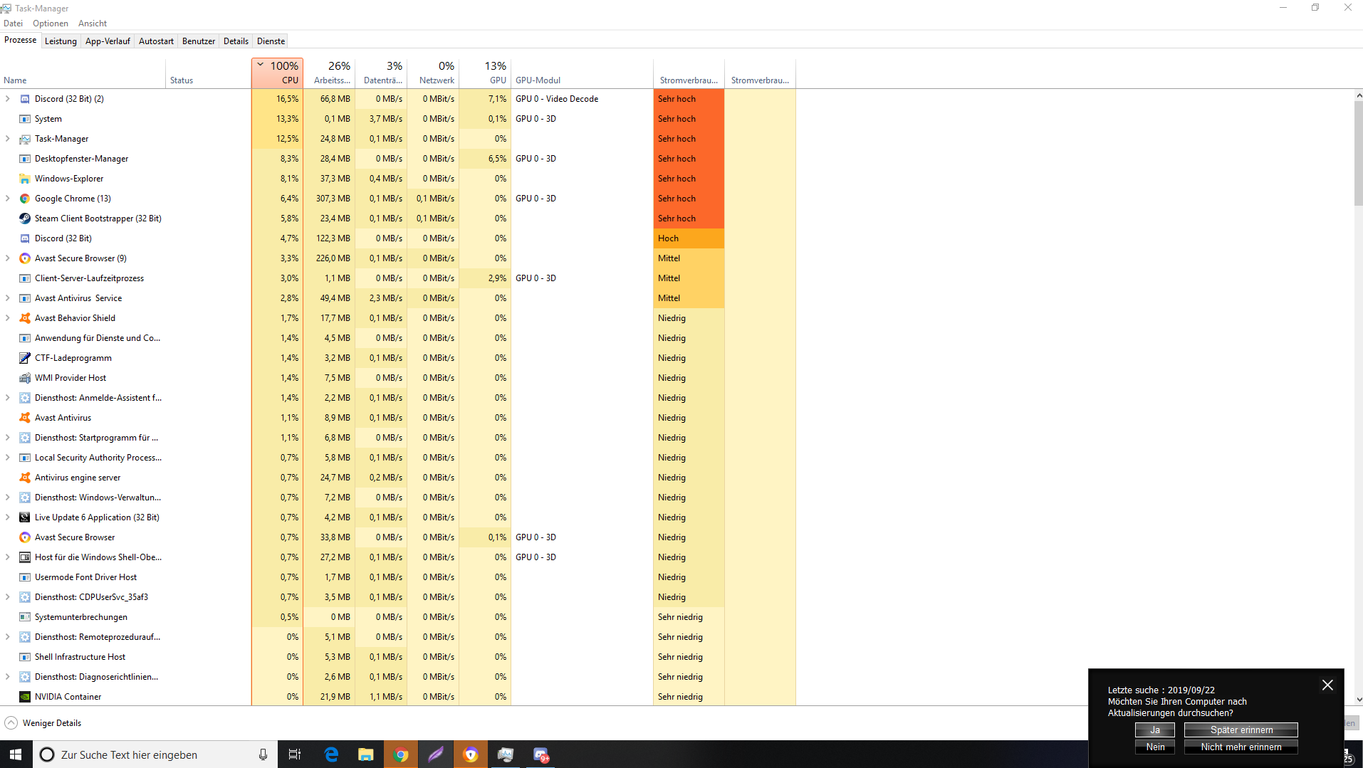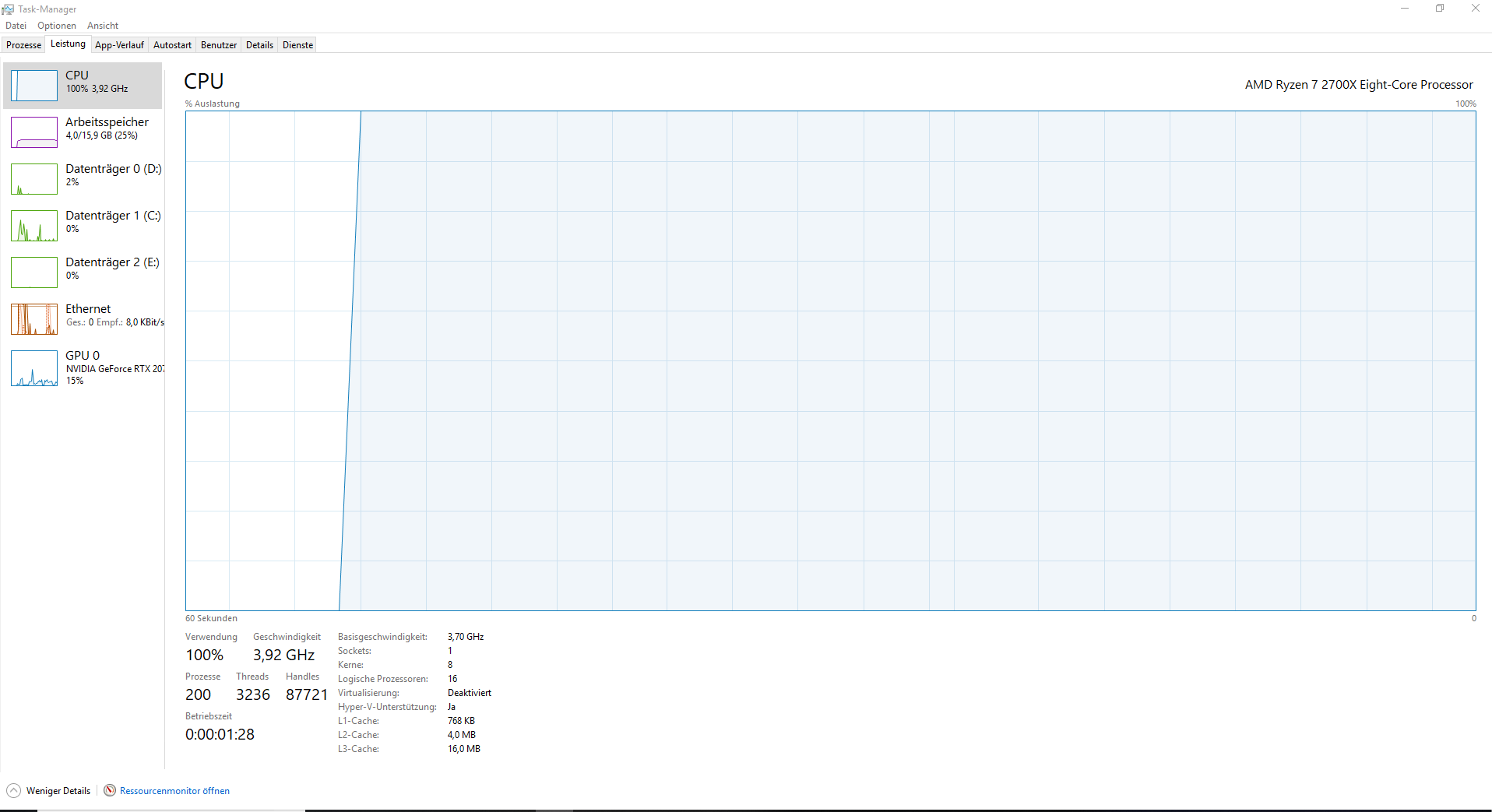 ich verzweifle echt, also gestern fing es an, mein ryzen 2700x hatte ohne erkennbaren Grund eine auslastung von 100 prozent konstant, ich dachte dass liegt an einem Virus und hab deswegen alle Festplatten formatiert und windows neu installiert.