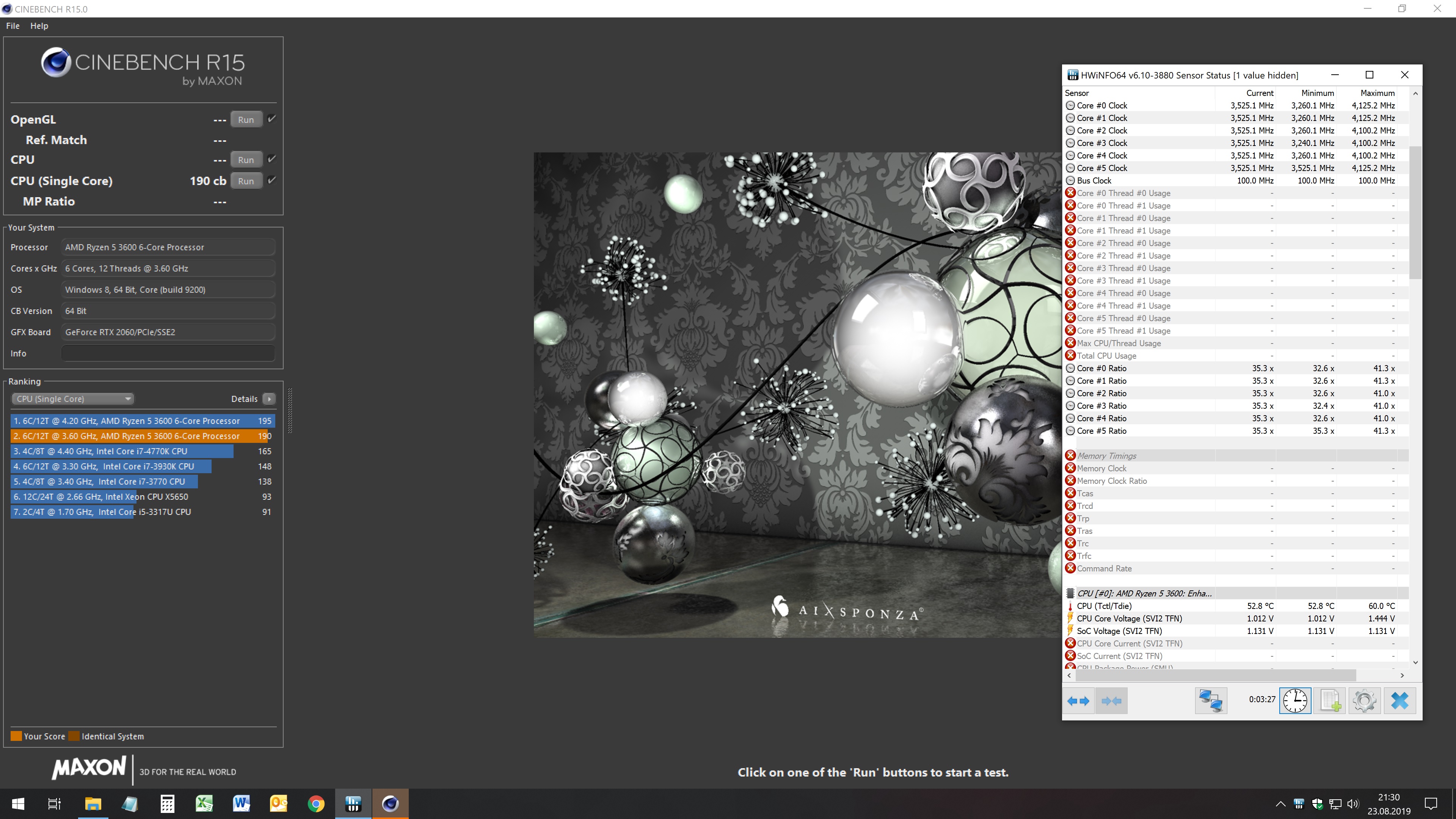 - Maximale Leistungstaktrate (Multicore CB R15): 3950 MHz.