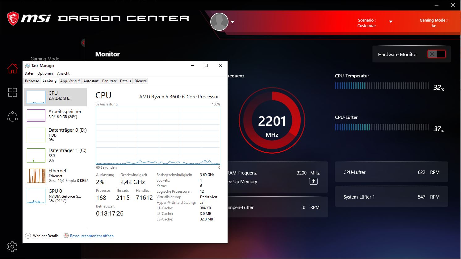 Mein 3600'er taktet seit der Installation von einem Spiel im Idle ohne ersichtlichen Grund hoch.
