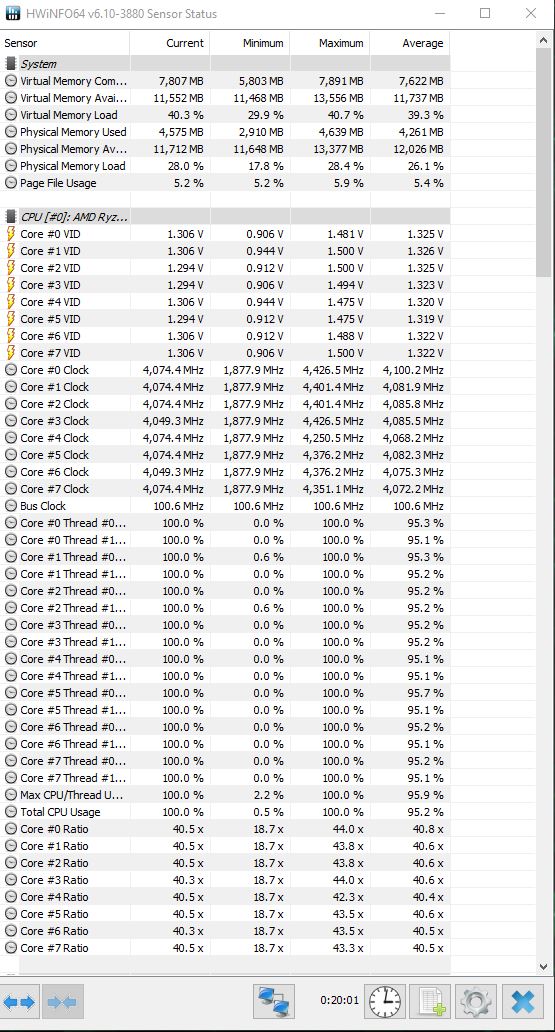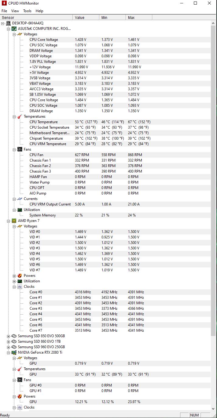 Die ersten HWMonitor Bilder habe ich hier - bin jetzt am Einstellung testen und poste dann weitere (danach auch im Ryzen Master).