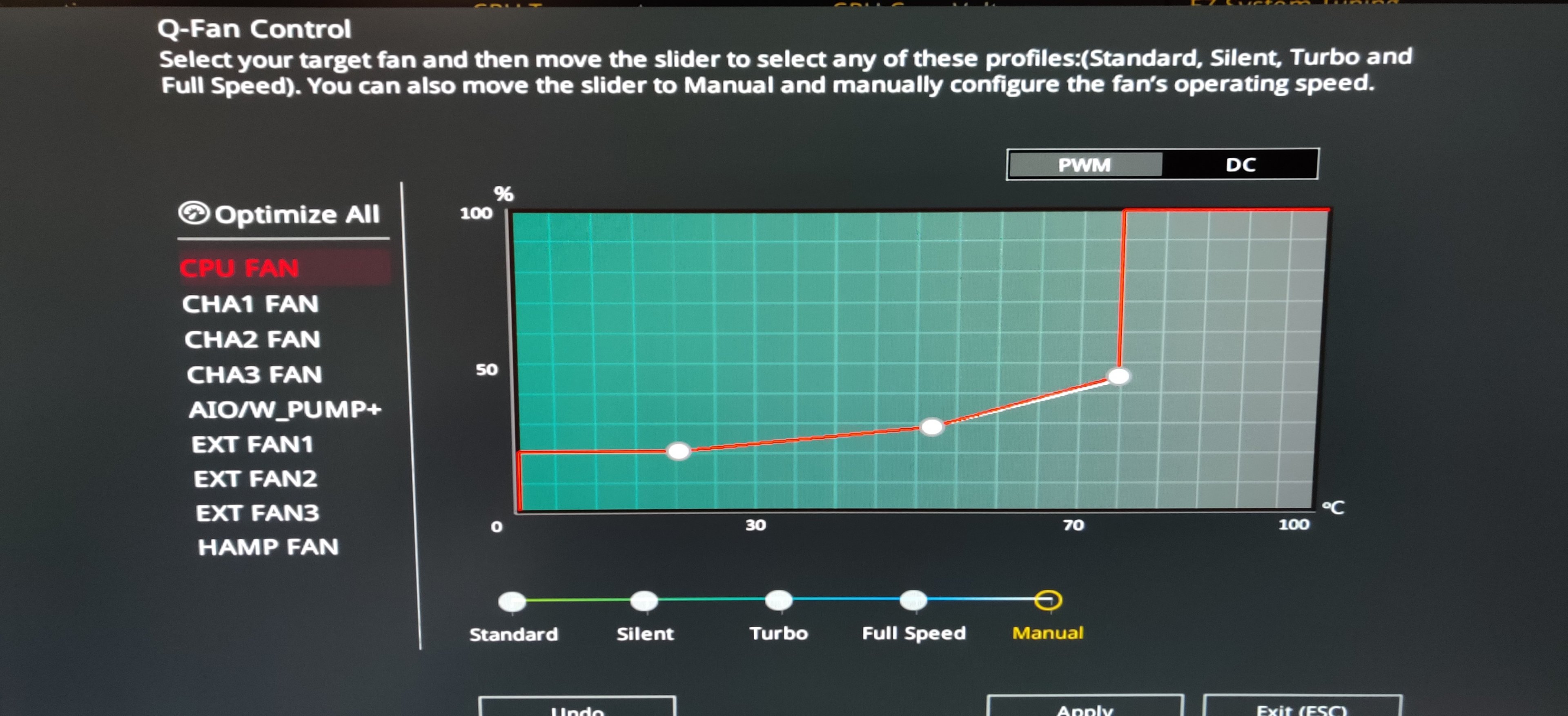 die Lüfterkurve finde ich nicht gut warum lässt du nicht langsam ansteigen auf 100%?