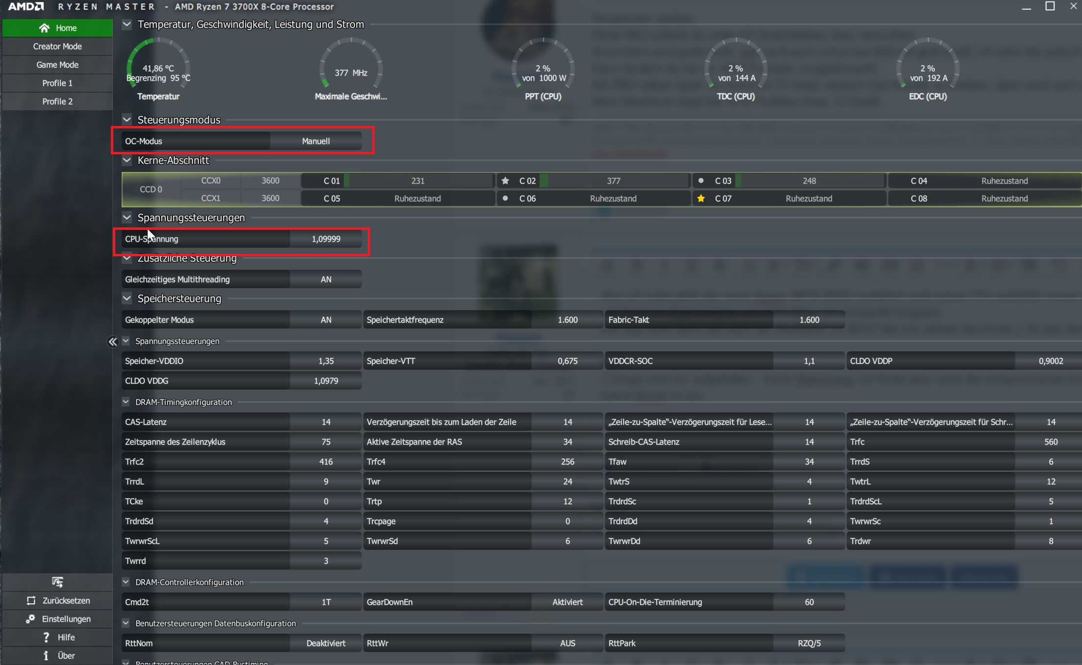 Dann muss man immer Ryzen Master starten um die Config anzupassen, selbst wenn man sagt Dragon Center nicht starten mit Windows, das drecks Teil lädt aber die Perfomance Settings trotzdem.