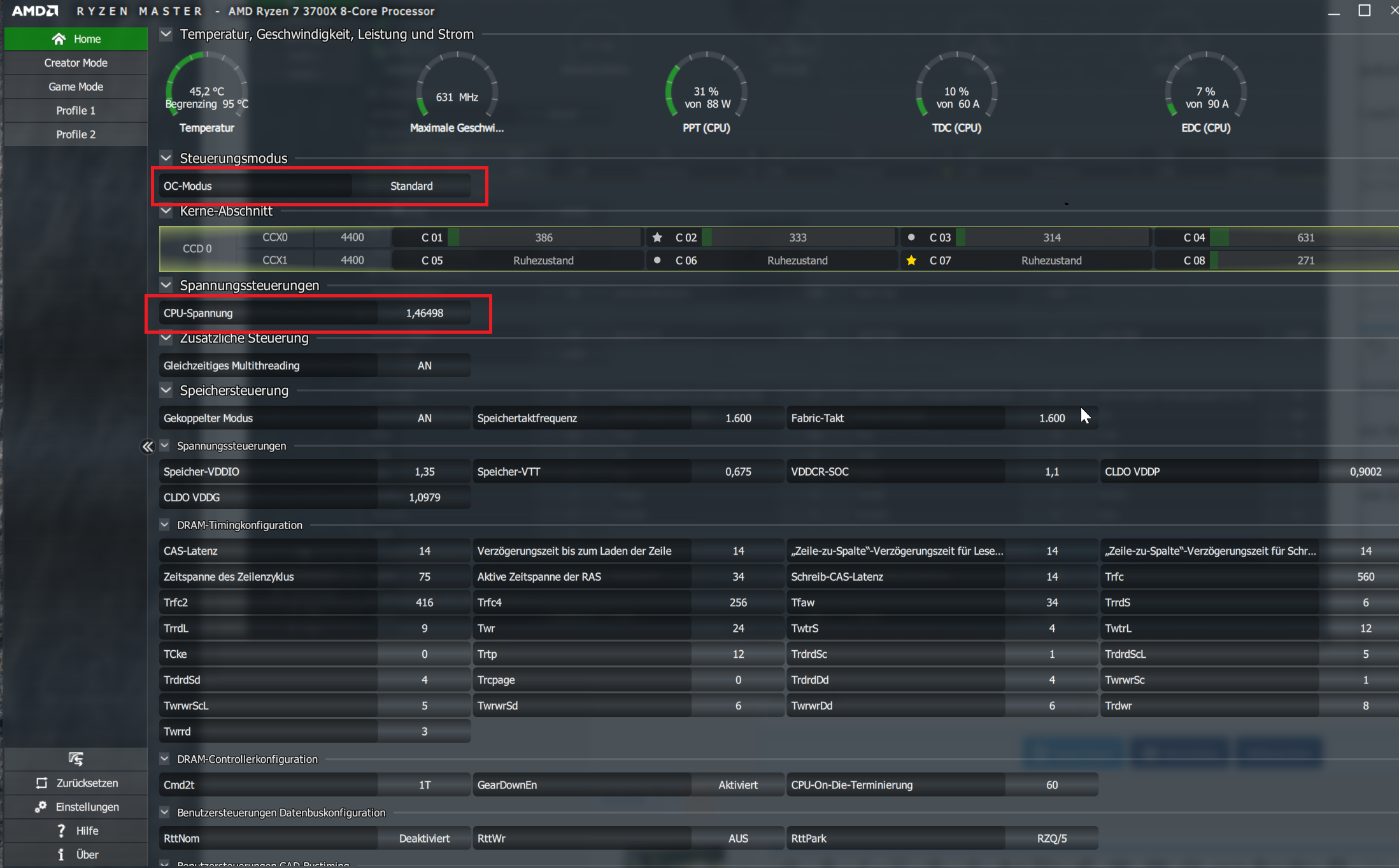 - Ryzen Master einmalig "Game Mode" geklickt und aktiviert
