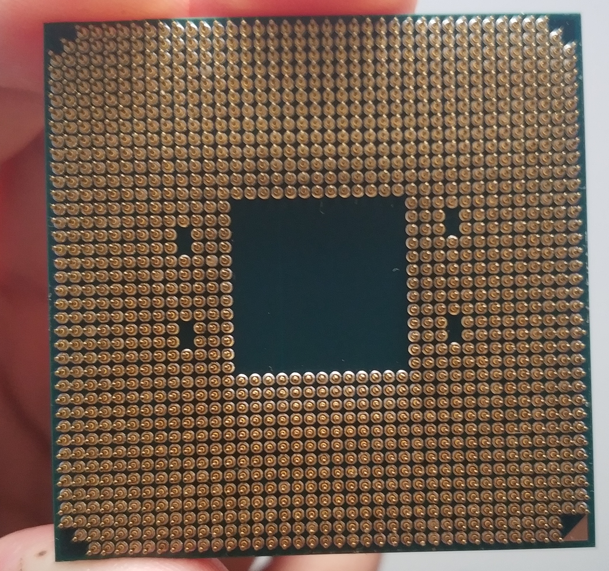 Den habe ich direkt wieder zurecht gebogen, ich mache eben ein Foto von der CPU (habe leider keine gute Kamera). Man sieht es aber nicht mehr. Es war ein einzelner Pin in der ganz rechten Reihe ca. unterhalb der halben Höhe.