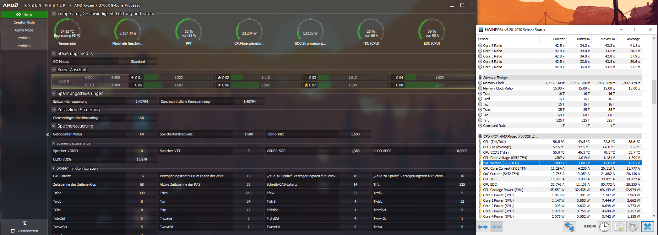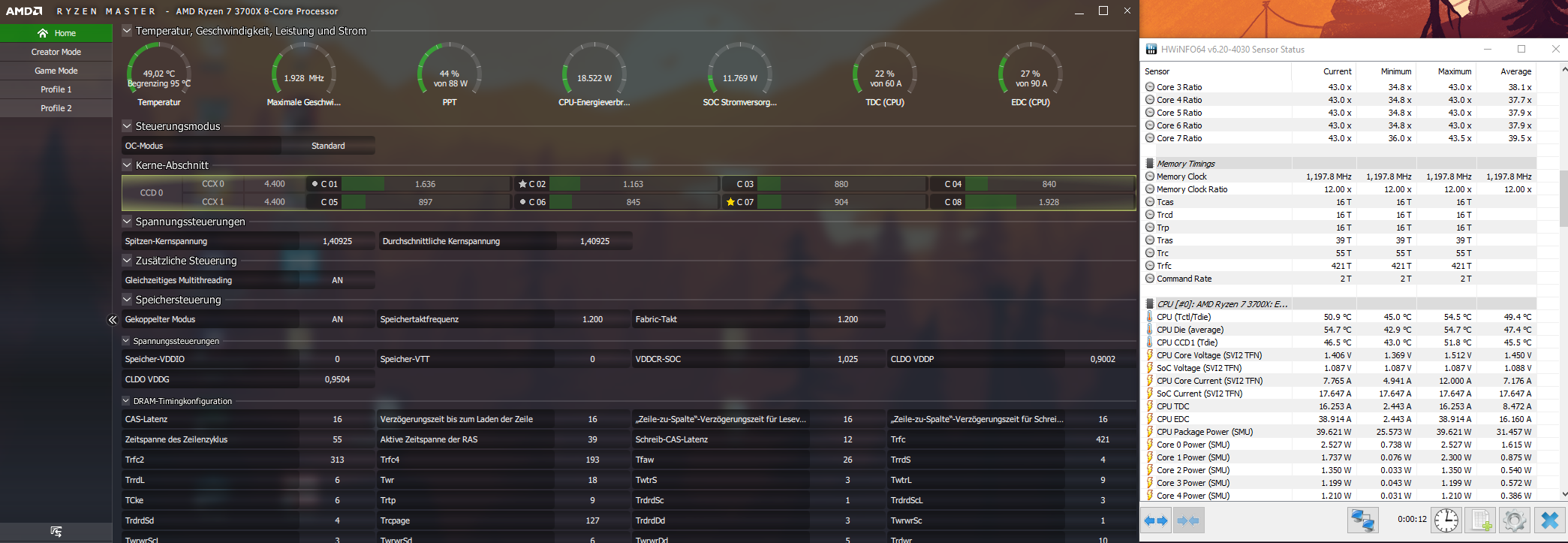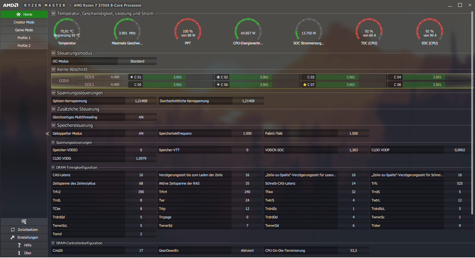 Hat jemand eine Idee woran das liegen könnte und wie man das beheben könnte? Im Anhang ein Bild vom Ryzen Master während eines Cinebench R20 Laufs.
