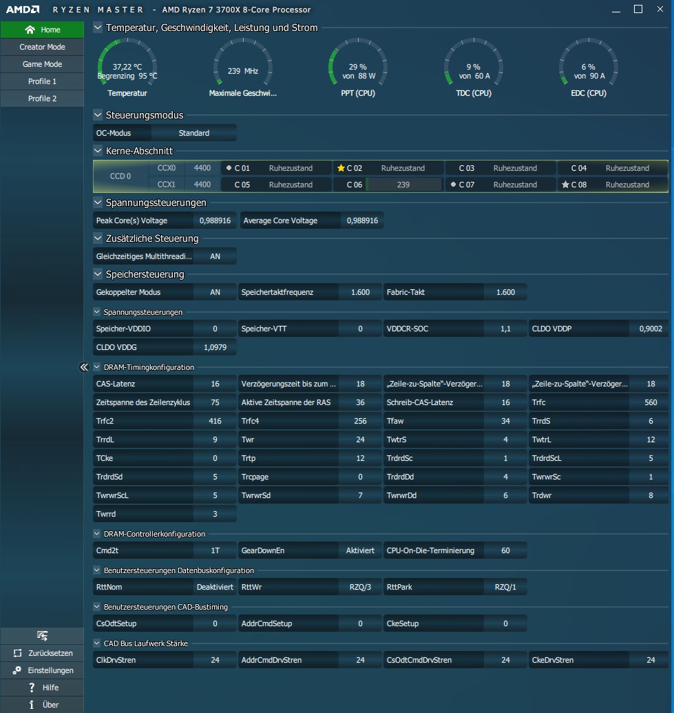 ok, hatte bisher nur CPU-Z und Core Temp genutzt. Dann mal Ryzen Master. Im Ryzen Master ist mir auch aufgefallen, dass da völlig andere niedrige Werte stehen, konnte das aber nicht so richtig einordnen, da CPU-Z (in der MSI Version für mein Board) bisher auch immer korrekte Werte angezeigt hatte. Ist es wahr, dass diese Tools jetzt nur noch Mist anzeigen ?