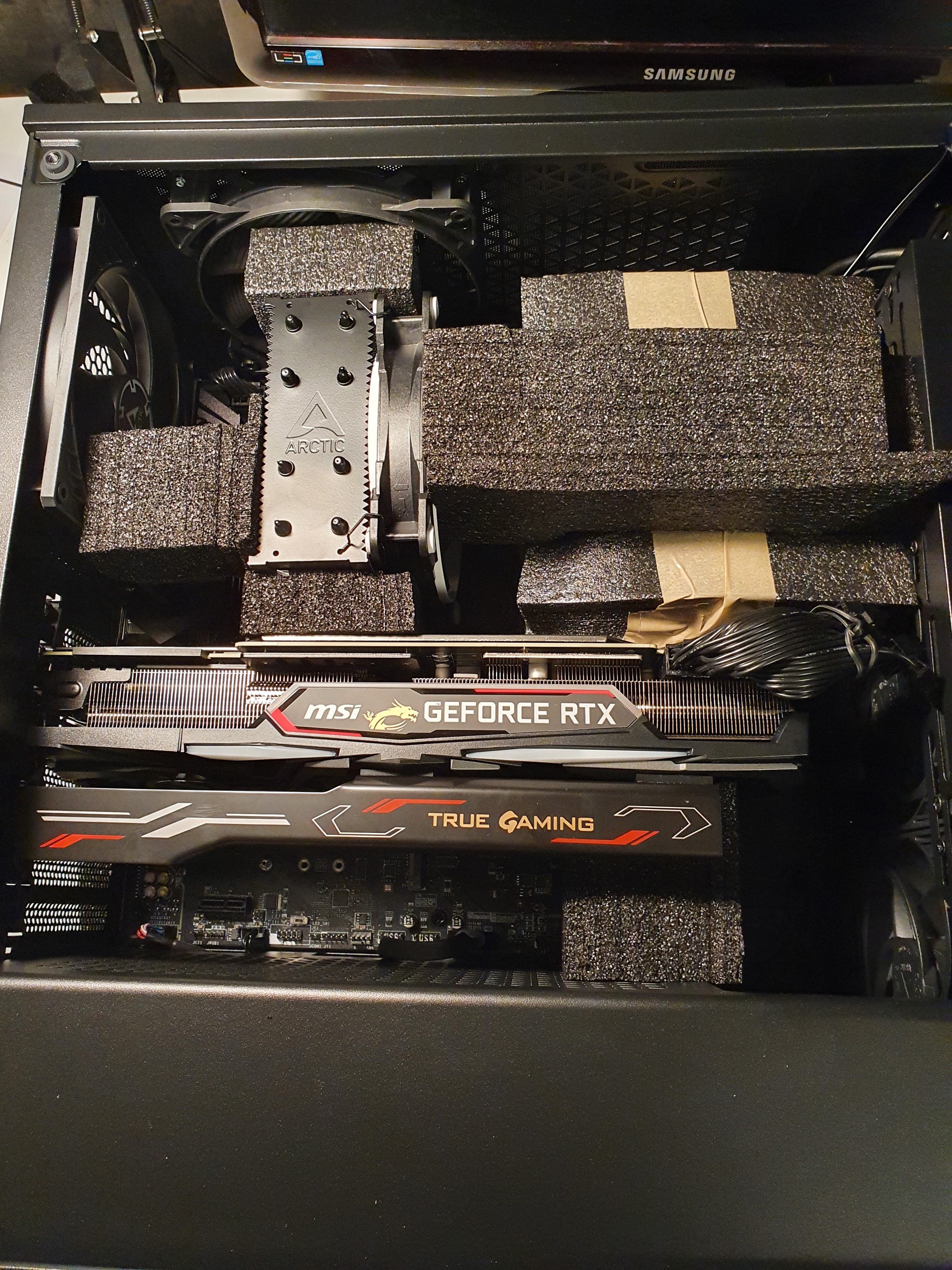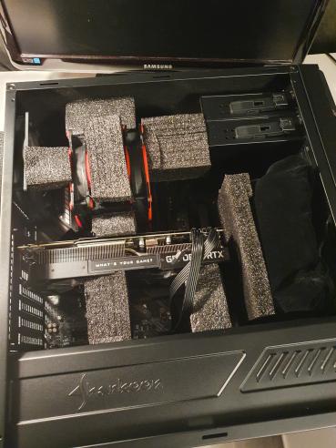 Was mich etwas wurmt, ist das Gewicht des DH14. Der PC wird per Zug nach fertigstellung transportiert und ich habe da ein wenig sorge, dass durch mögliche Rüttelbewegung das Board schaden nehmen könnte, wenn der dicke Lüfter-Ballermann anfängt zu schwingen. Nachher einbauen ist leider nicht möglich.