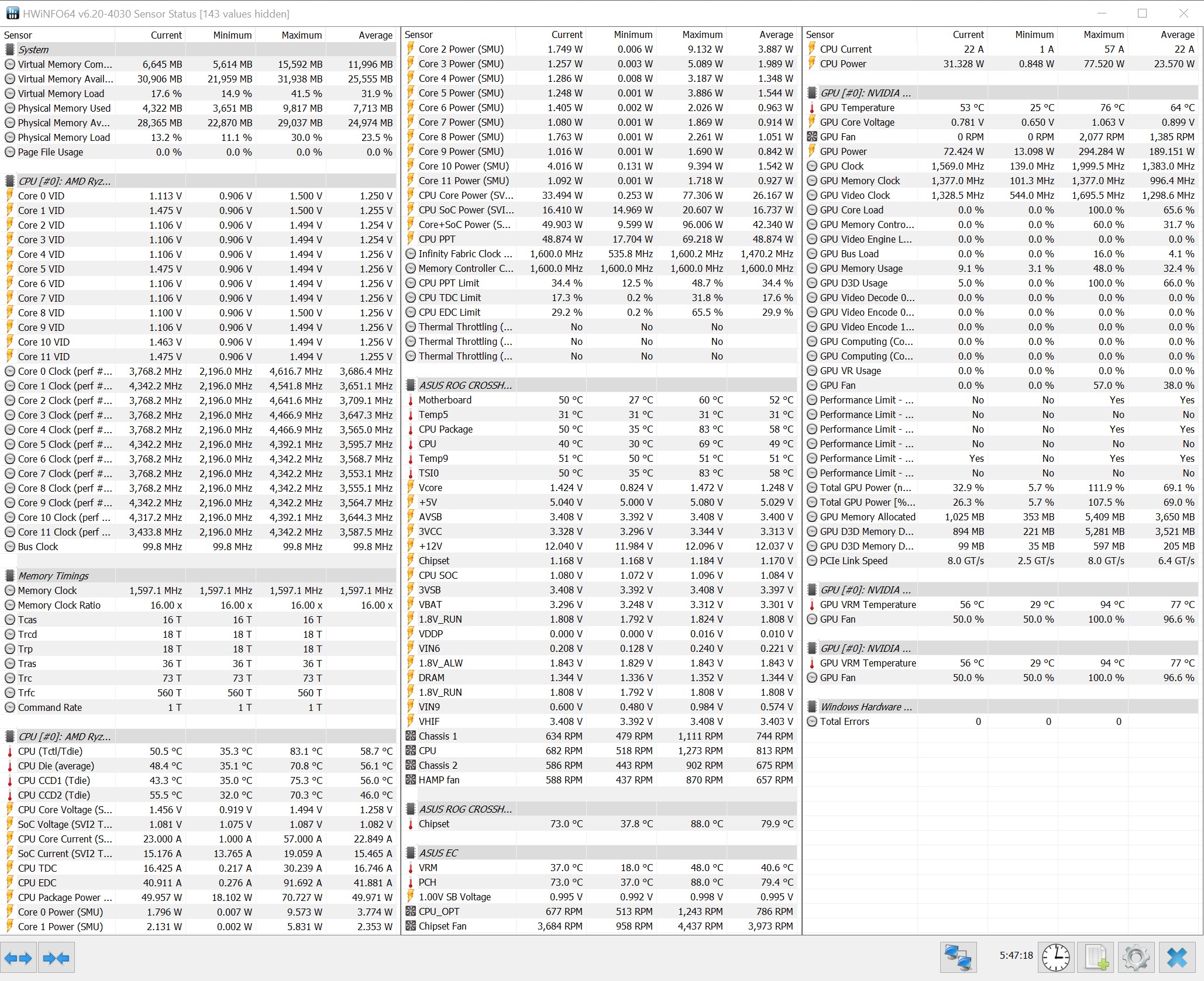 DarkSoul schrieb:Der Case 2 Lüfter dreht relativ langsam während der Spiele-Session, der Case 1 fast auf 1200. Da stimmt was nicht, evtl. verschiedene Sources oder unterschiedliche Lüfterkurven verwendet? Der 3. Lüfter fehlt in der Auflistung.