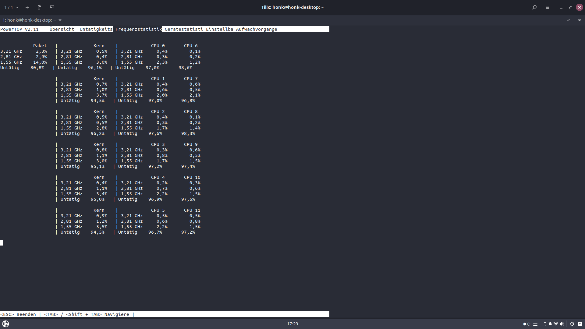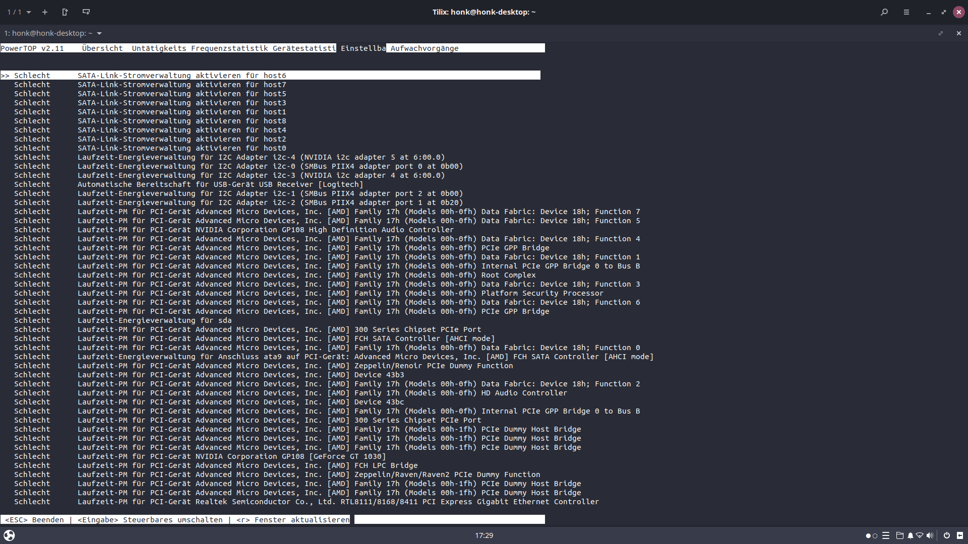 Deshalb sollte das System eigentlich maximal sparsam sein und ich bin mir sicher, dass ich ganz am Anfang, als ich das System aufgesetzt habe, noch einen Idle-Verbrauch von 35 Watt an der Steckdose gemessen habe. Danach kamen diverse Kernel-Updates für das Budgie-Ubuntu UND ich habe die ursprüngliche Zotac GTX 970 gegen die o.g. GT 1030 ausgetauscht.