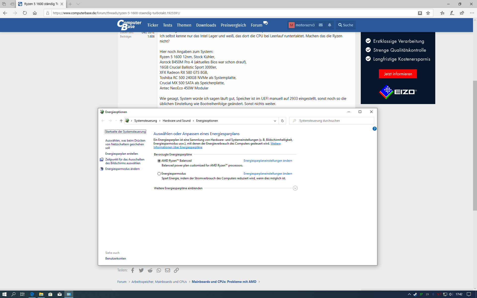 Ich selbst kenne nur das Intel Lager und weiß, das dort die CPU bei Leerlauf runtertaktet. Machen das die Ryzen nicht?