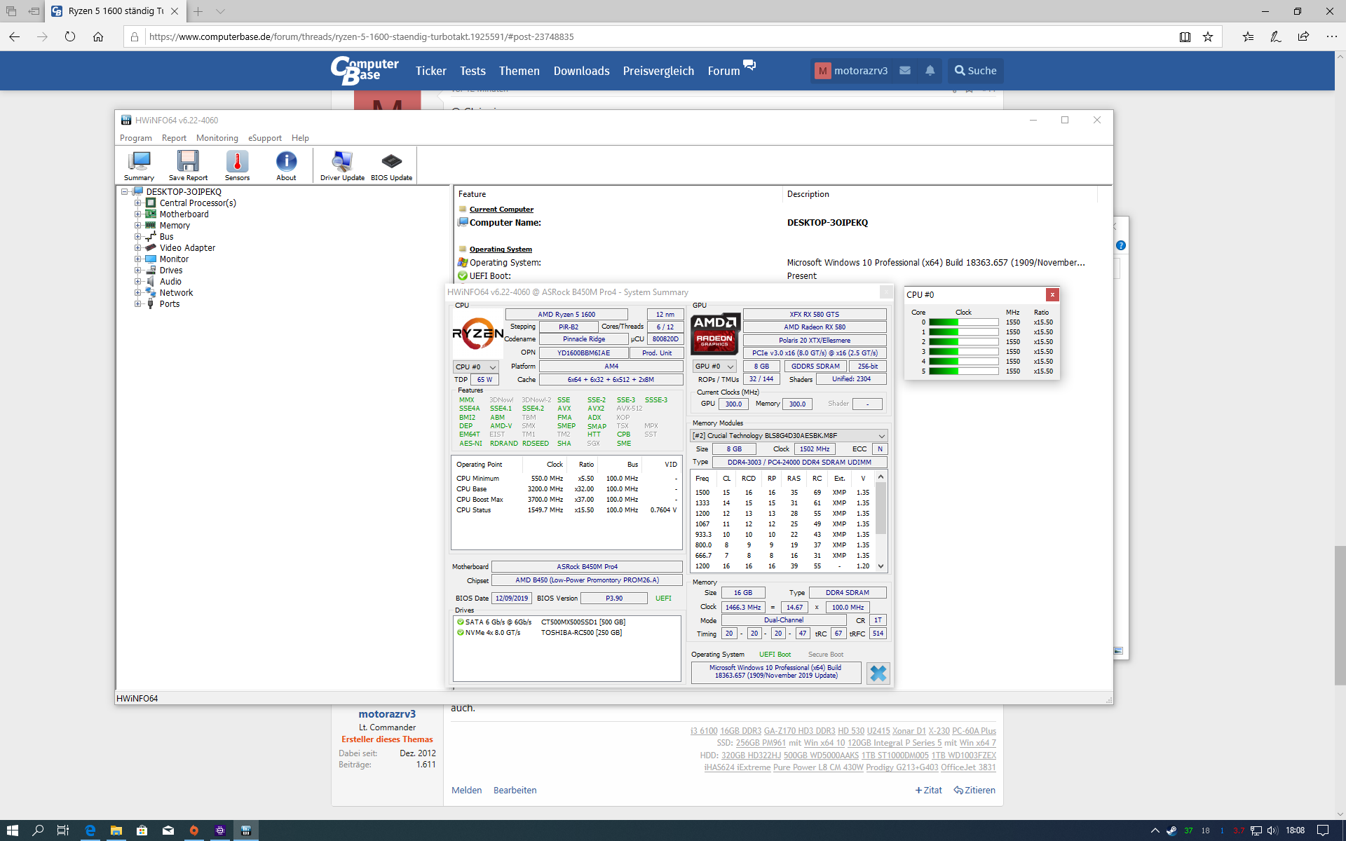 Wie gesagt, System würde ich sagen läuft gut, Speicher ist im UEFI manuell auf 2933 eingestellt, sonst noch so die üblichen Einstellung wie Bootreihenfolge geändert. Sonst nichts weiter.