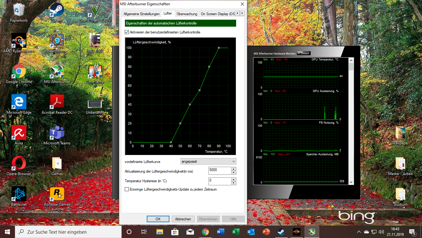 ich habe mir vor paar Tagen den 600 Euro PC aus der Kaufberatung gebaut. Soweit hat alles geklappt und ich bin zufrieden mit dem Ergebnis. Lediglich die Grafikkarte war etwas zu laut. Nach Anpassung der Lüfterkurve in MSI Afterburner (ca. 50 Prozent bei 70 grad. Passt das?) ist der Geräuschepegel für mich in Ordnung.