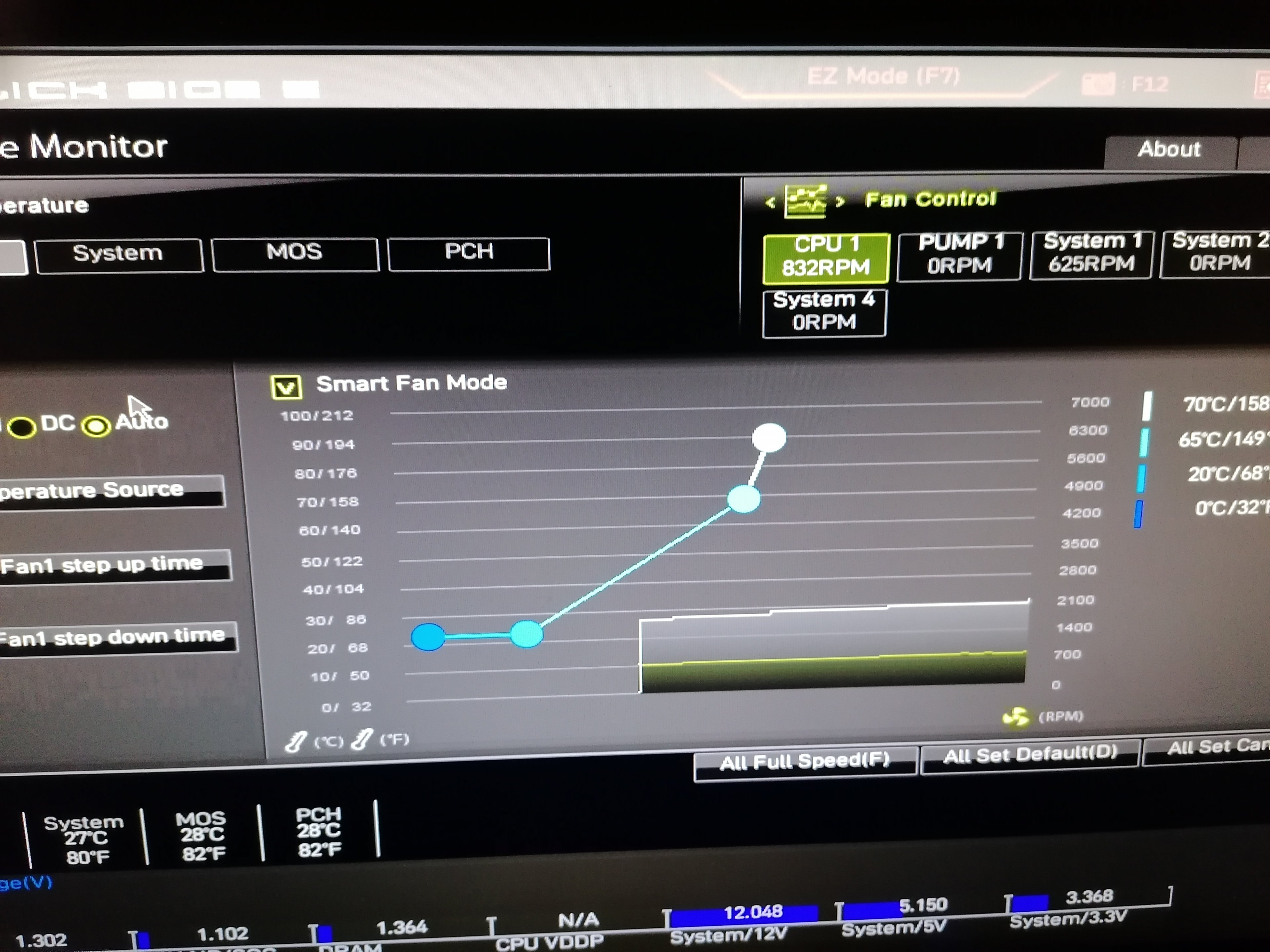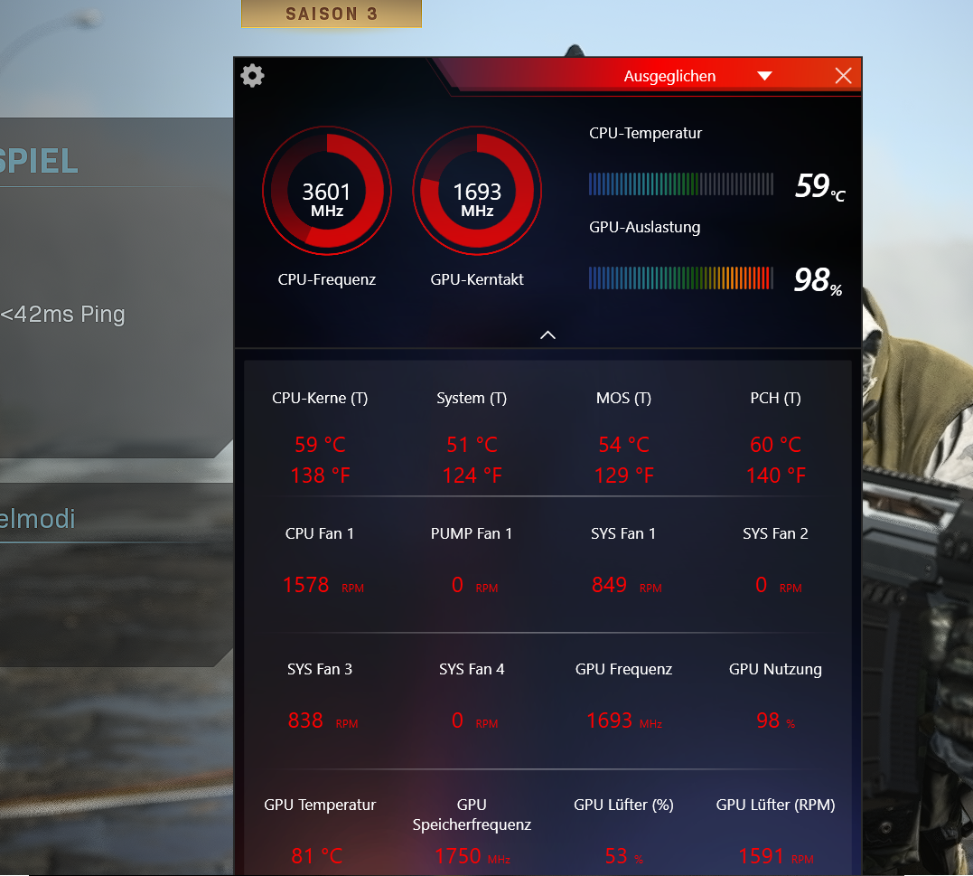 ich kann nur meine Frage zum zweiten Mal wiederholen: Läuft da irgendeine Lüfterkurve/Silent-Einstellung im UEFI oder Afterburner/andere Software?