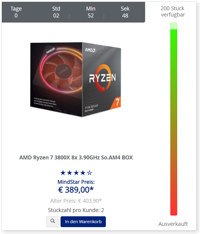 Der 3700X sollte mit der TDP von 65W eigentlich gar kein X im Namen haben, weil das ein eher auf Effizienz optimiertes Modell ist. Bei AMD gab es wohl auch schon einen 3700 im Portfolio und es stellt sich die Frage, ob das der gleiche Prozessor war, nur mit anderem Namen. Letztendlich haben sie wohl die Takte etwas höher gewählt, weil es beim guten Yield des neuen 7nm-Prozesses wider Erwarten ging, und dann haben sie das X an den Namen gepackt. Letztendlich kannibalisiert der damit aber den 3800X, denn...