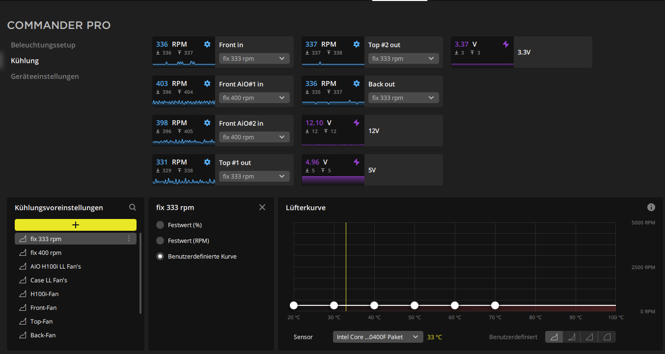 Hier mal meine Einstellung beim Commander zu den 2 Lüftern der AiO, hier als AiO #1 und AiO #2 zu sehen.