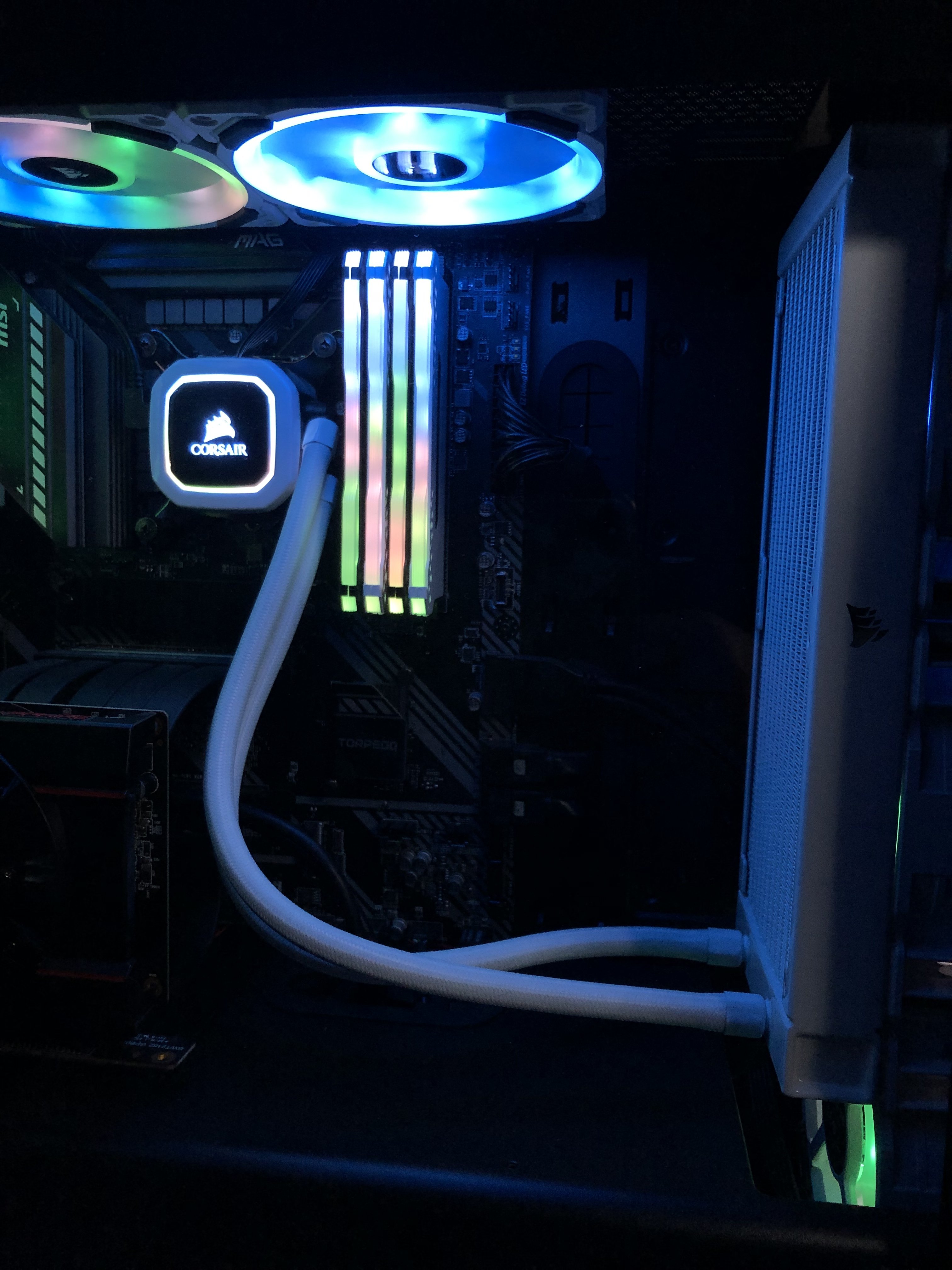 Edit: (ist auf dem Bildern vom anfang nicht ganz eindeutig zu erkennen, die Kabel scheinen nach hinten zu gehen, sind da dann vermutlich angeschlossen? Bzw. das Dickere, das von der AIO weggeht.)