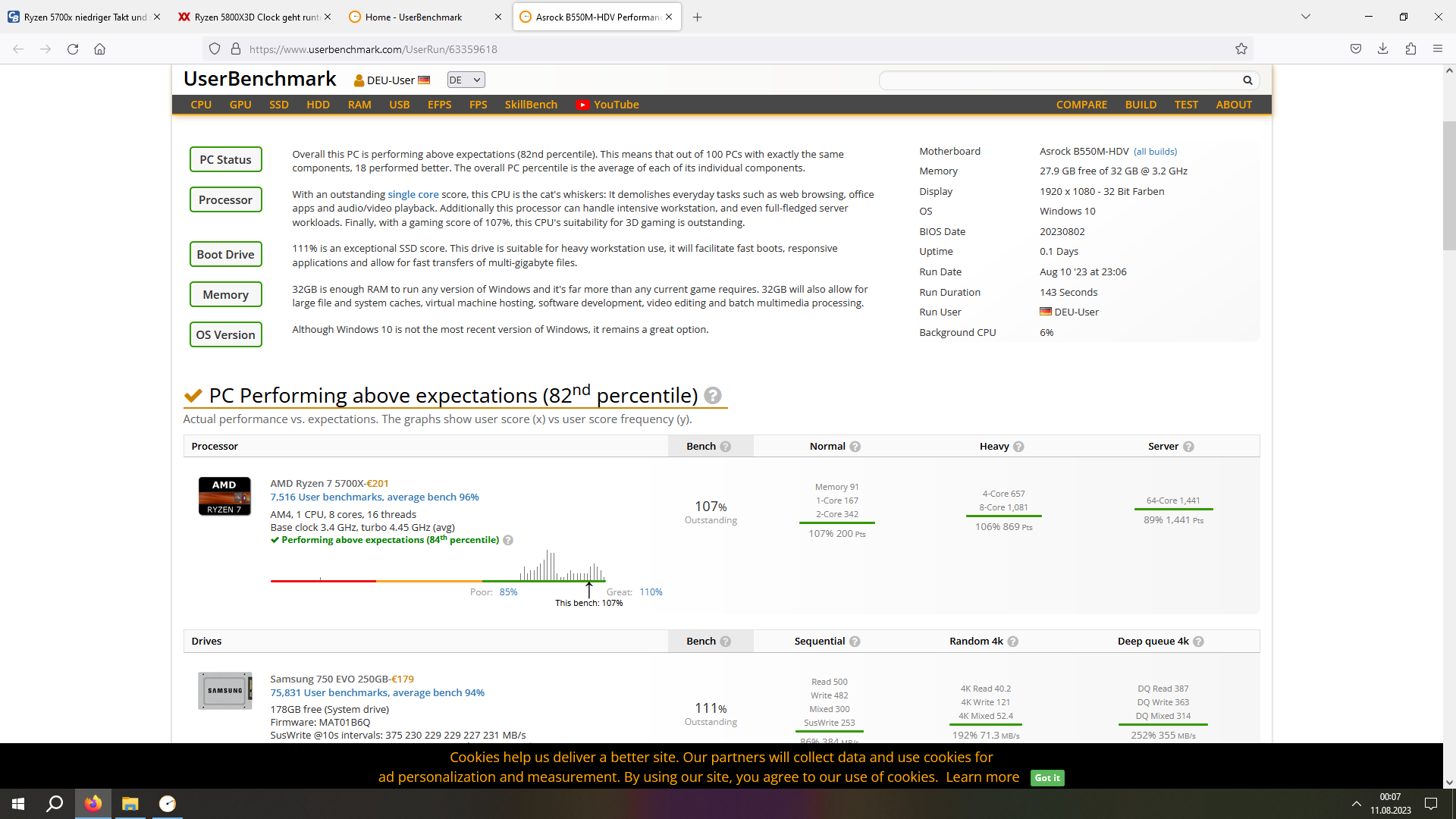 Zuerst auf den 65W ECO Mode gestellt, alles Stock nur XMP Profil.