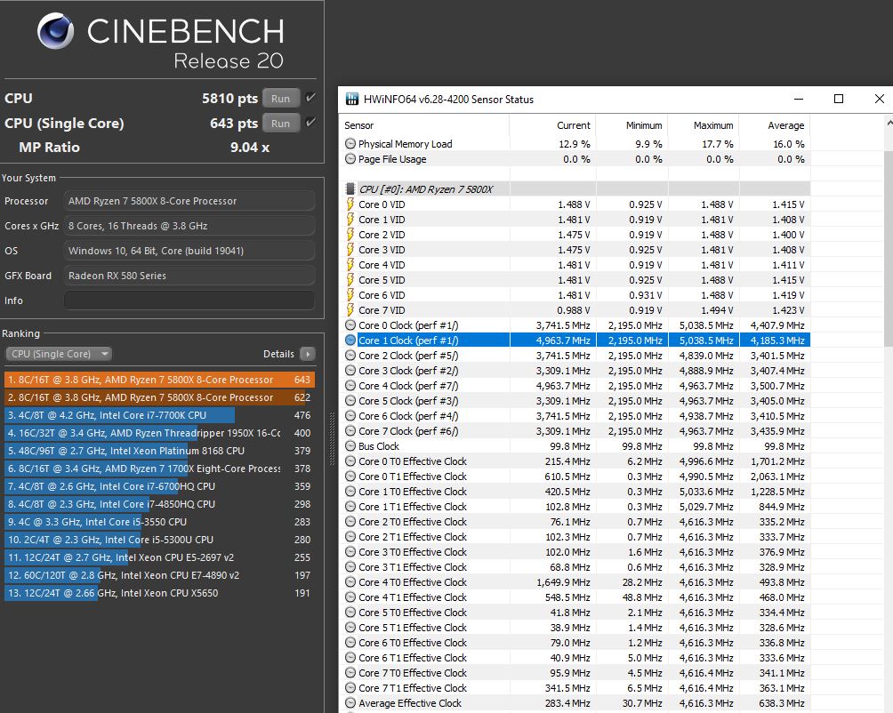 Der Takt liegt hier ebenfalls bei um die 5Ghz auf einzelnen Cores.