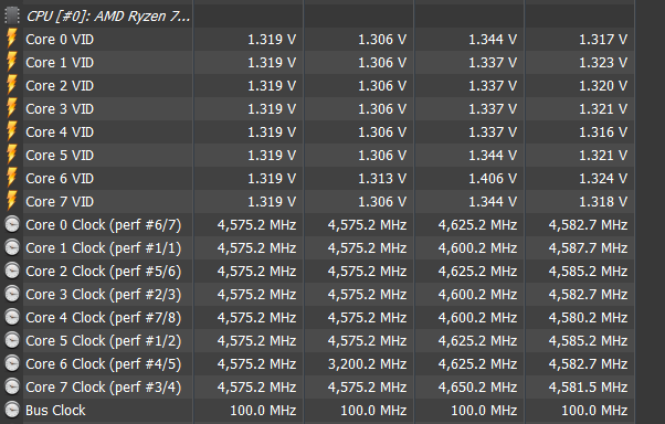 SeniorY schrieb:Mich würde mal interessieren, wie viel Volt Eure Cores unter Vollast (Cinebench) ziehen und wie hoch sie takten ohne PBO.