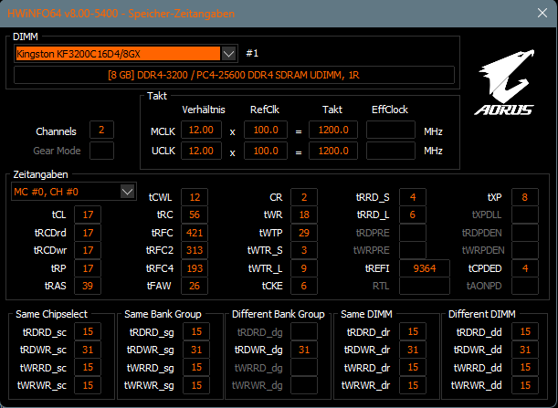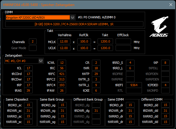 - Arbeitsspeicher (RAM): Kingston KF3200C 4x8GB
