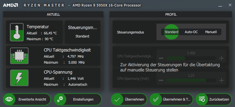 Gerade das nächste Stück Hardware ausgetauscht. Jetzt hat der Ryzen 5950X den alten 3950X ersetzt. Im Bios habe ich XMP (3200 MHz, CL14) und SMV (Virtualisierung) aktiviert. WiFi aus, Soundkarte vom Mainboard aus, Lüfterkurven angepasst, sonst nichts geändert. Erster Durchlauf Cinebench R23 hat gerade All Core Takt von 3.7 -3.8 Ghz, eher 3.7 Ghz. Bringt dann etwa 24.000 Punkte. Diverse Benchmarks geben um die 28.000 Punkt an. Habe ich einfach ein konveratives Board, dass bei PBO auf auto kein OC betreibt, nen schlechtes Modell erwischt oder könnte es sonstige Probleme geben?