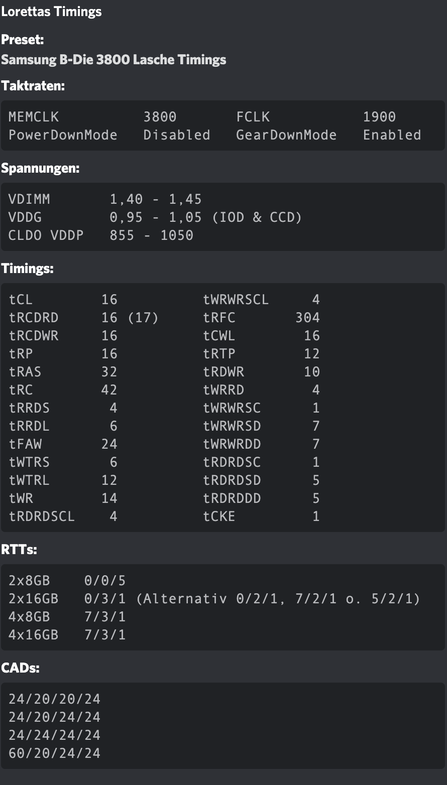 - tRFC1/2/4 war auch erst auf auto, habe ich dann aber auch entsprechend auf den tRFC Wert aus dem DRAM Calculator gestellt