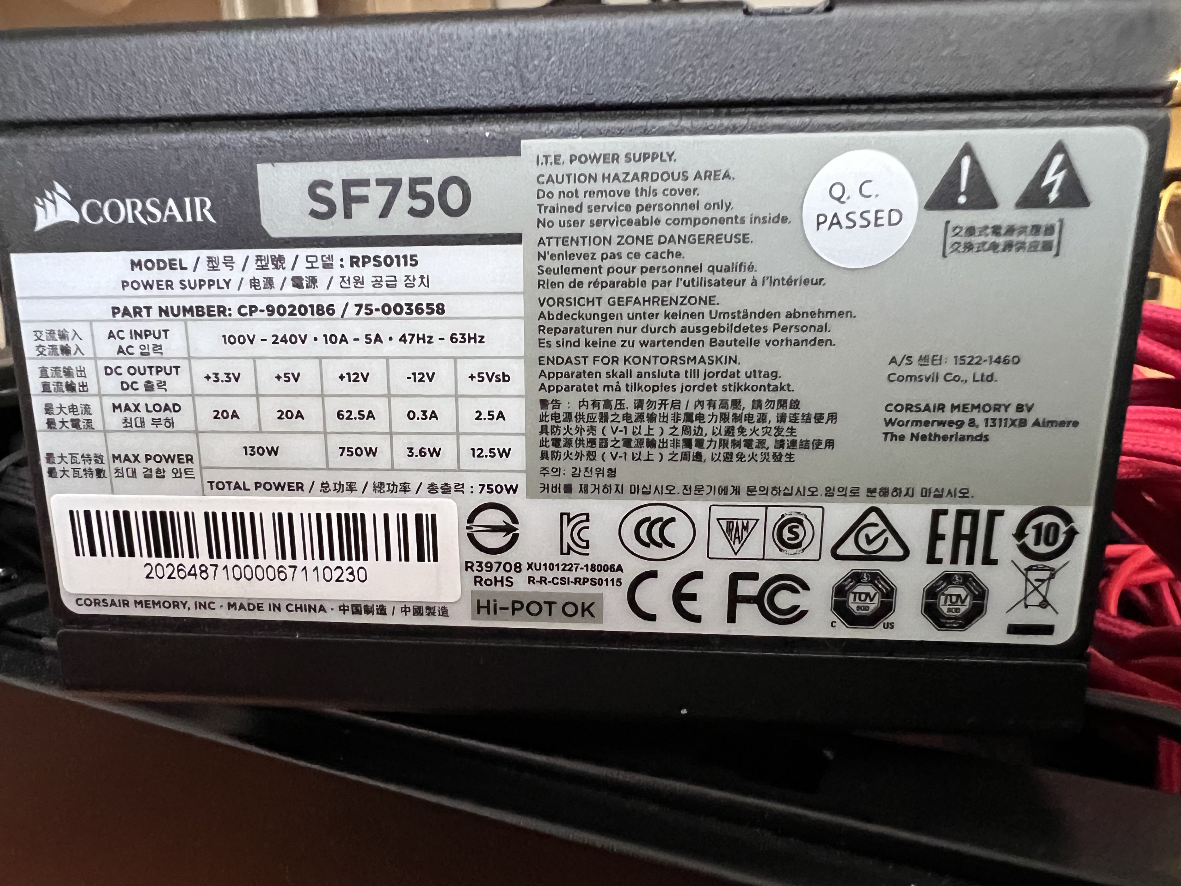 Der PC lief übrigens das erste halbe Jahr komplett stabil, und dabei war noch nichts gedrosselt/undervolted. Will heissen, kein Undervolting, kein FPS-Cap. Zusätzlich wurde die CPU damals noch von einer dicken AIO samt LCD-Display gekühlt, außerdem hingen noch 2 Fan-Hubs und ein Corsair RGB-Kontroller samt 9 RGB-Lüfter im Case. An der Leistung mangelt es also nicht. Außerdem liegt man mit 750W-Netzteil laut Nvidia-Vorgaben auch genau im Rahmen (von denen bekannt ist, dass sie immer übertrieben gewählt werden).