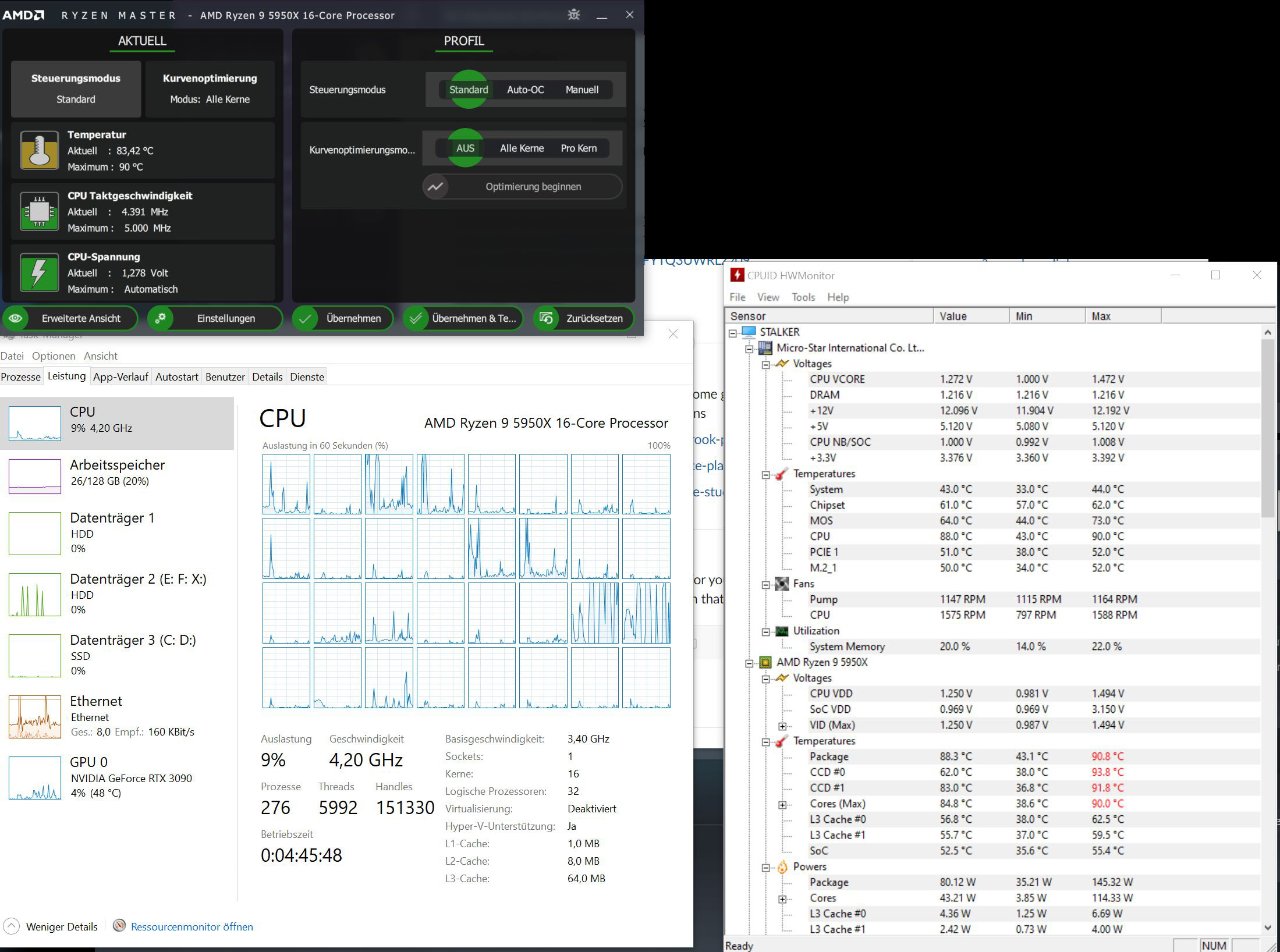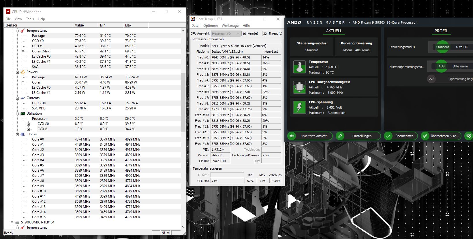 Die Temperaturen wurden mit dem Ryzen Master, Coretemp sowie HWMonitor gemessen.