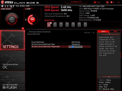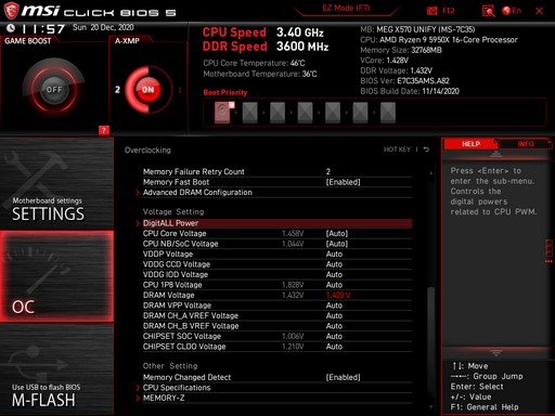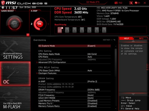 Bin nach dem Einbau meines 5950x auf MSI MEG x570 Unify (A.82) und 32GB DDR4-4000 TridentZ (CL19) etwas ratlos.