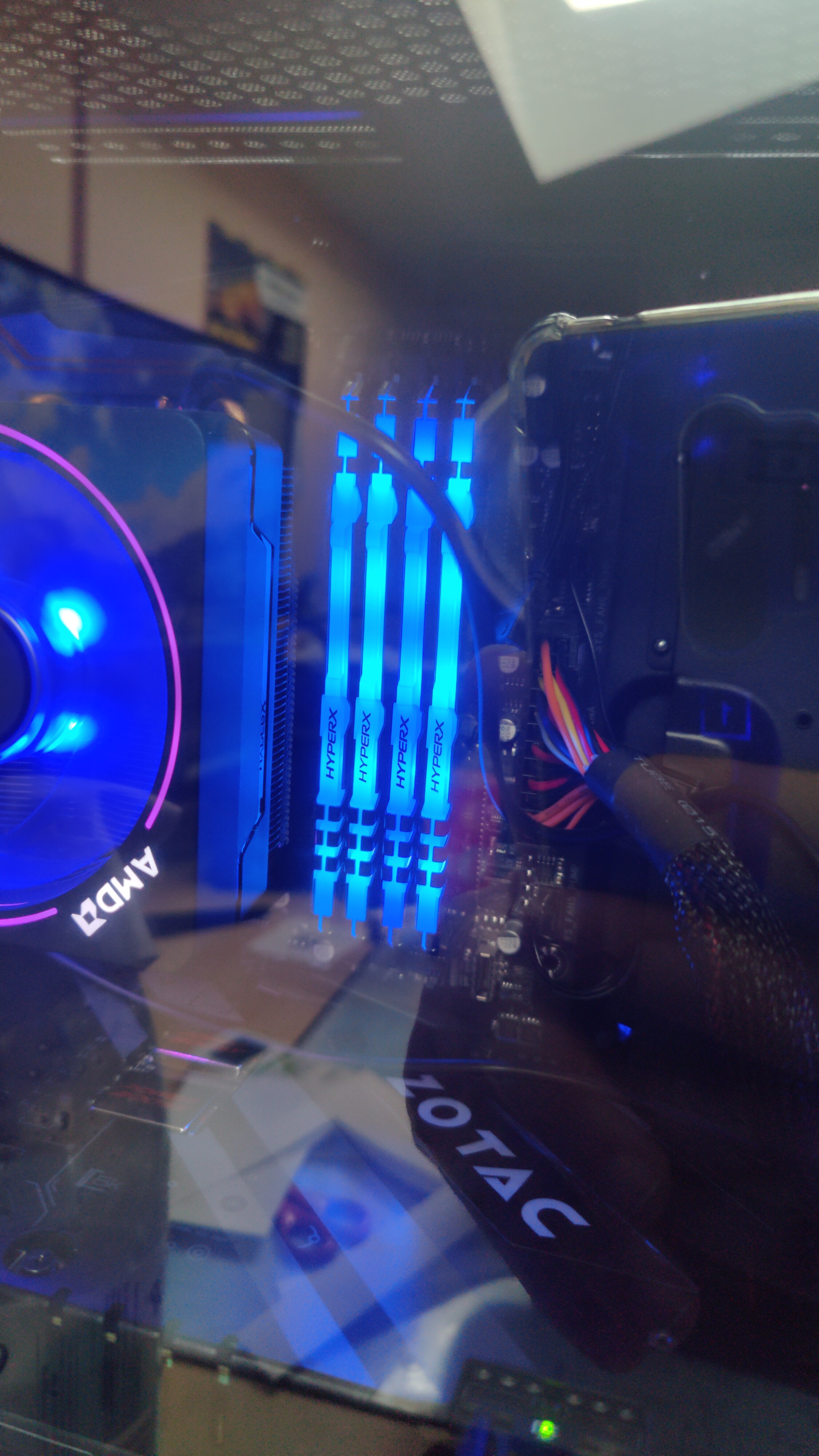 Also nochmal als gesamtes: Verbaut ist ein R7 2700x läuft auf Standardtakt, das Gigabyte Aourus x470 , aktuell die 4 Ram Riegel, eine Zotac 1080ti AMP extreme und ein Thermaltake Berlin 630 watt Netzteil.
