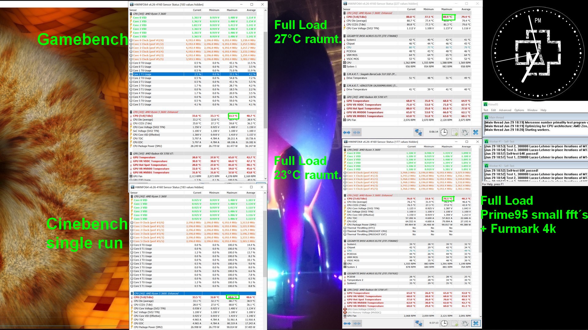 unten links zu sehen sind max 68°C bei 24°C Raumtemperatur, deine Temperatur erreicht mein System noch nichtmal unter Fullload oben rechts, wohlgemerkt nur mit 3 Purewings 2 120er Lüftern.