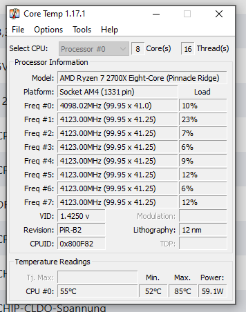 Die CPU hat in dem moment 55 Grad Celsius bei 10% Auslastung?