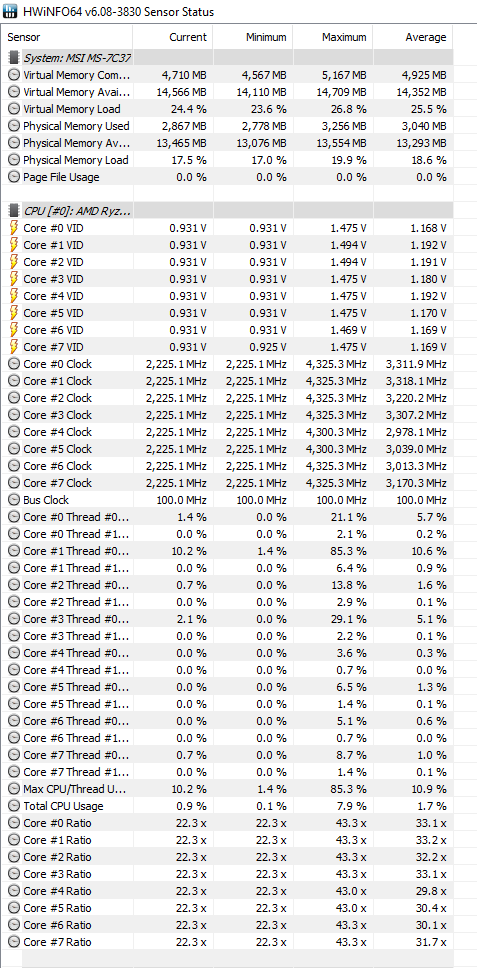 Hab hwinfo jetzt installiert zeigt mir genu das gleiche 1,4v -1,5v und springt mit den mhz ZahlenNed Flanders schrieb:Hab ich keine Erfahrung mit, sollte aber gehen. Was ich meine ist halt nicht erstmal Driver Optimizer, Afterburner, Ryzenmaster, Fraps und shark codec package draufhauen um sich dann zu wundern dass irgendwas zickt.