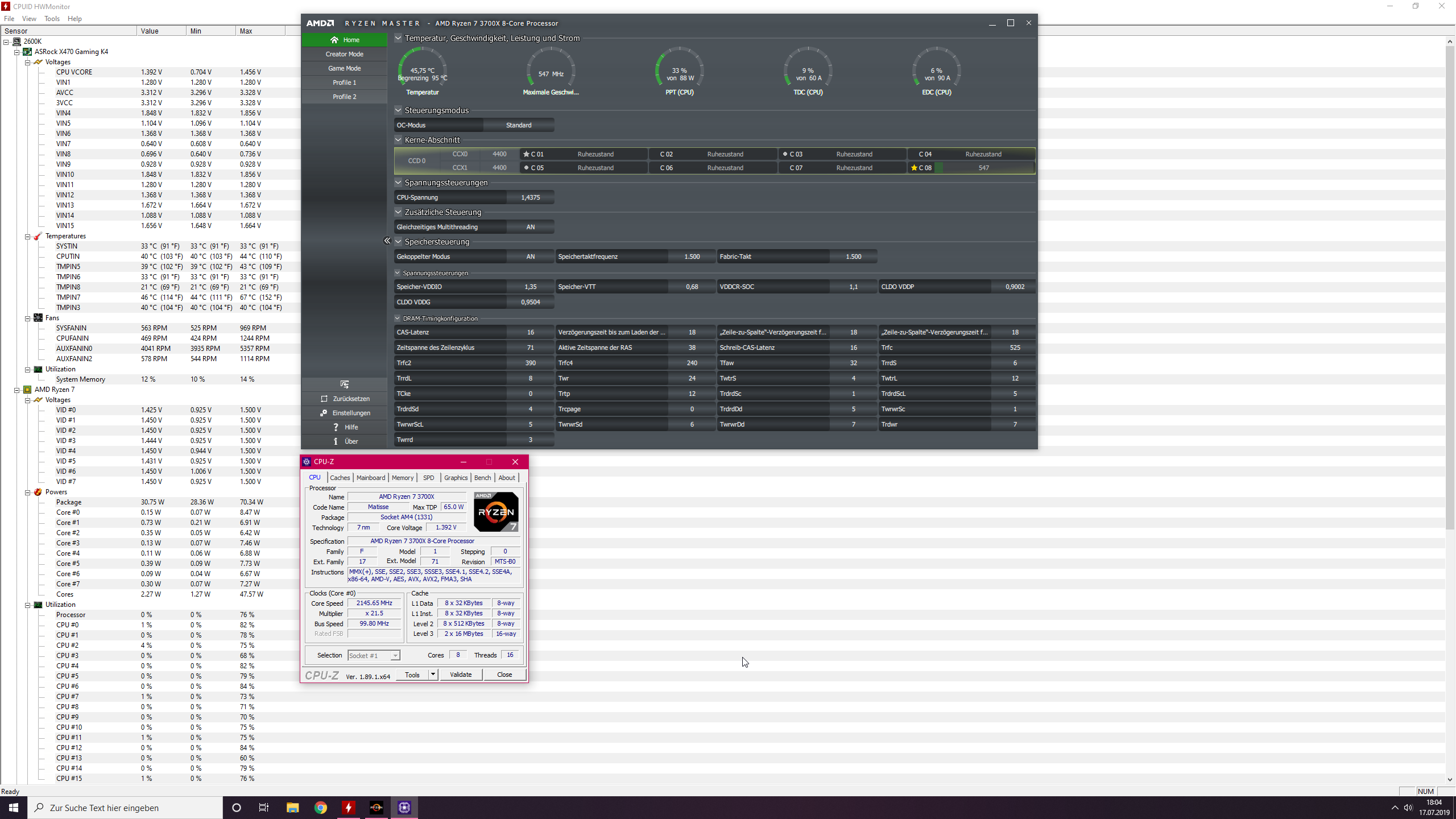 Nachtrag: wobei ich mir nicht wirklich sicher bin, ob hier nicht eventuell auch Auslesefehler auftreten. CPU-Z und Ryzen Master zeigen mir teilweise völlig unterschiedliche Werte.