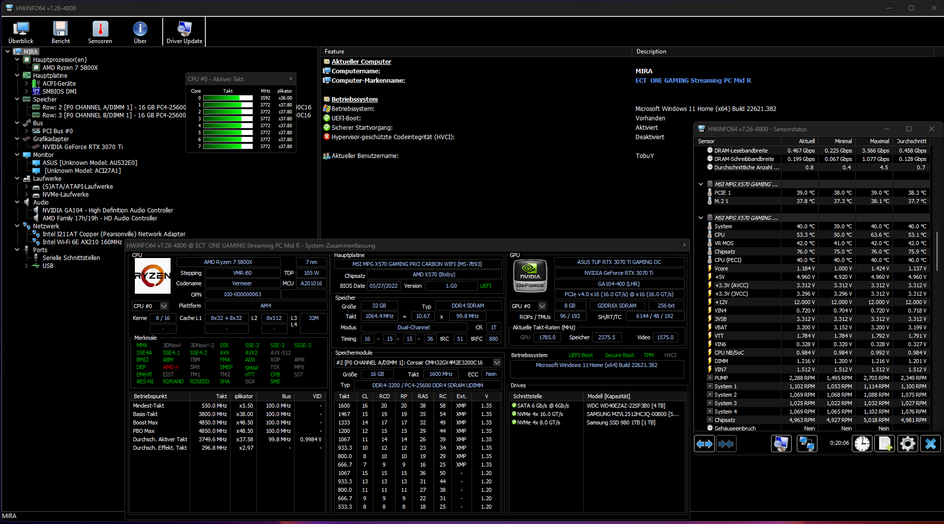 - Grafikkarte: NVIDIA GeForce RTX 3070 Ti ASUS TUF Gaming OC