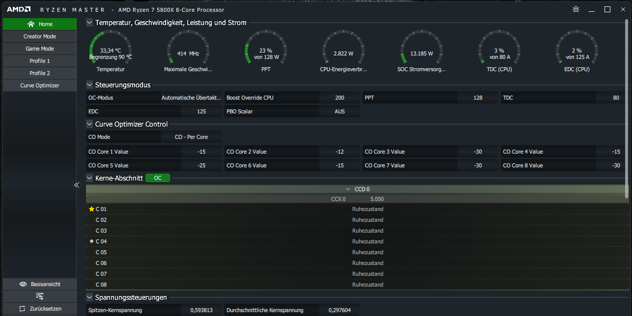 Servus ich habe heute den ryzen 7 5800x eingebaut und wusste schon im voraus das dieser hohe temperaturen hat, nun habe ich mich etwas schlau gemacht und mir undervolting videos angeschaut, und habe meine cpu nun so eingestellt im bios :