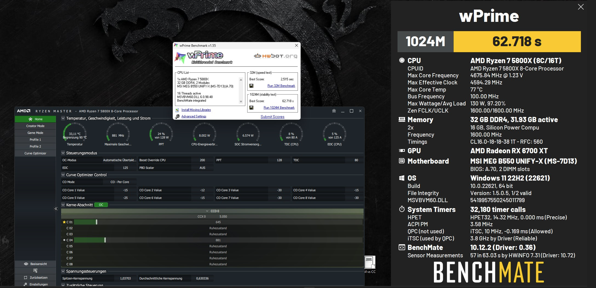 Kannst das Programm ja nehmen um einen Vergleich deiner CPU, einmal Stock ohne Anpassungen und Optimierungen und einmal 95W Eco Mode und ausgelotetem CO, zu machen.