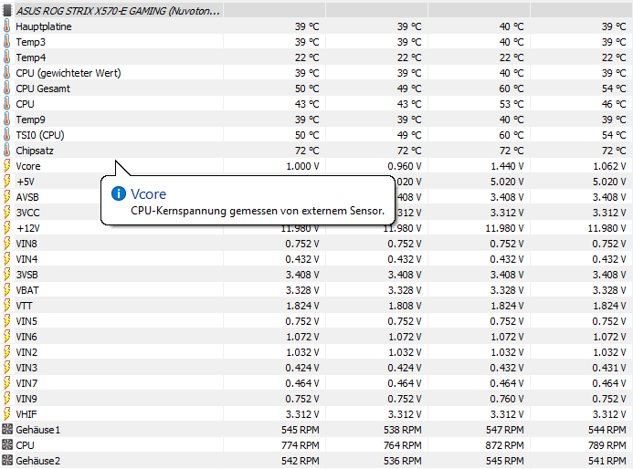Liefere doch bitte mal einen Screenshot von HWiNFO für den angeblichen Idle. Dazu zu Beginn die Sensorenansicht wählen, die Anzeige dann auf drei Spalten schalten, und dann den Rechner 10 Minuten im Idle lassen. Dann einen Screenshot vom Fenster anfertigen und hier posten.