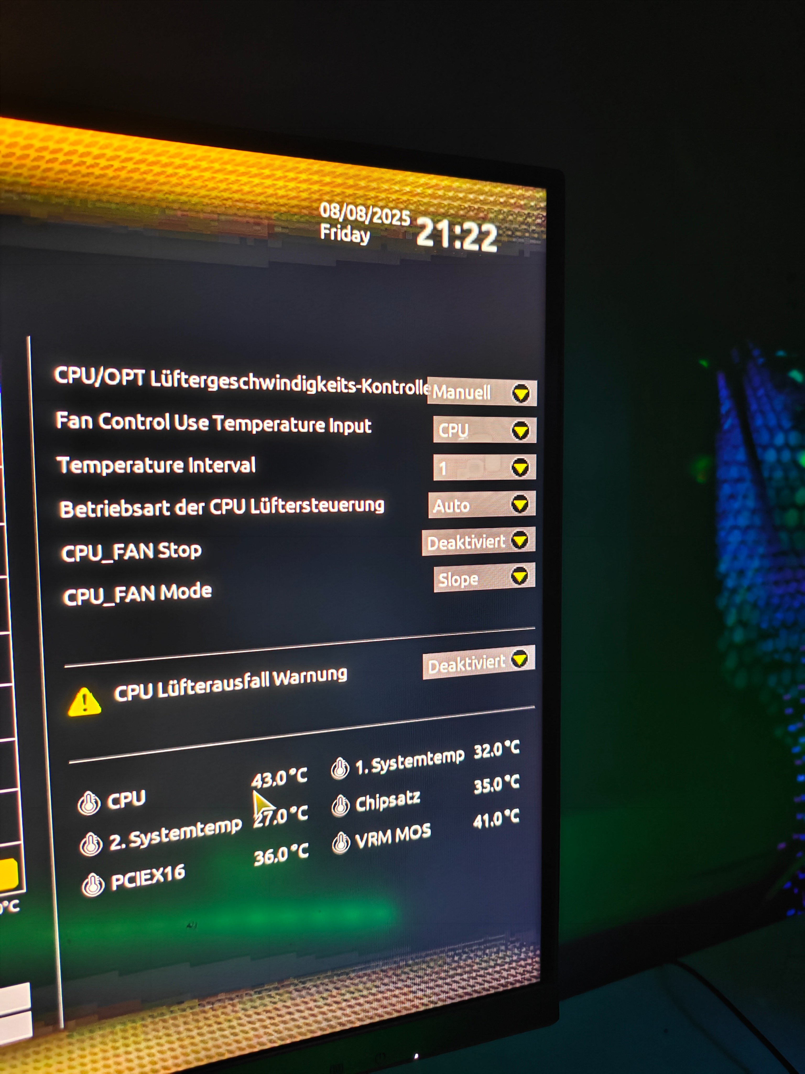 Im Bios habe ich die Kurven für CPU und Fans auf