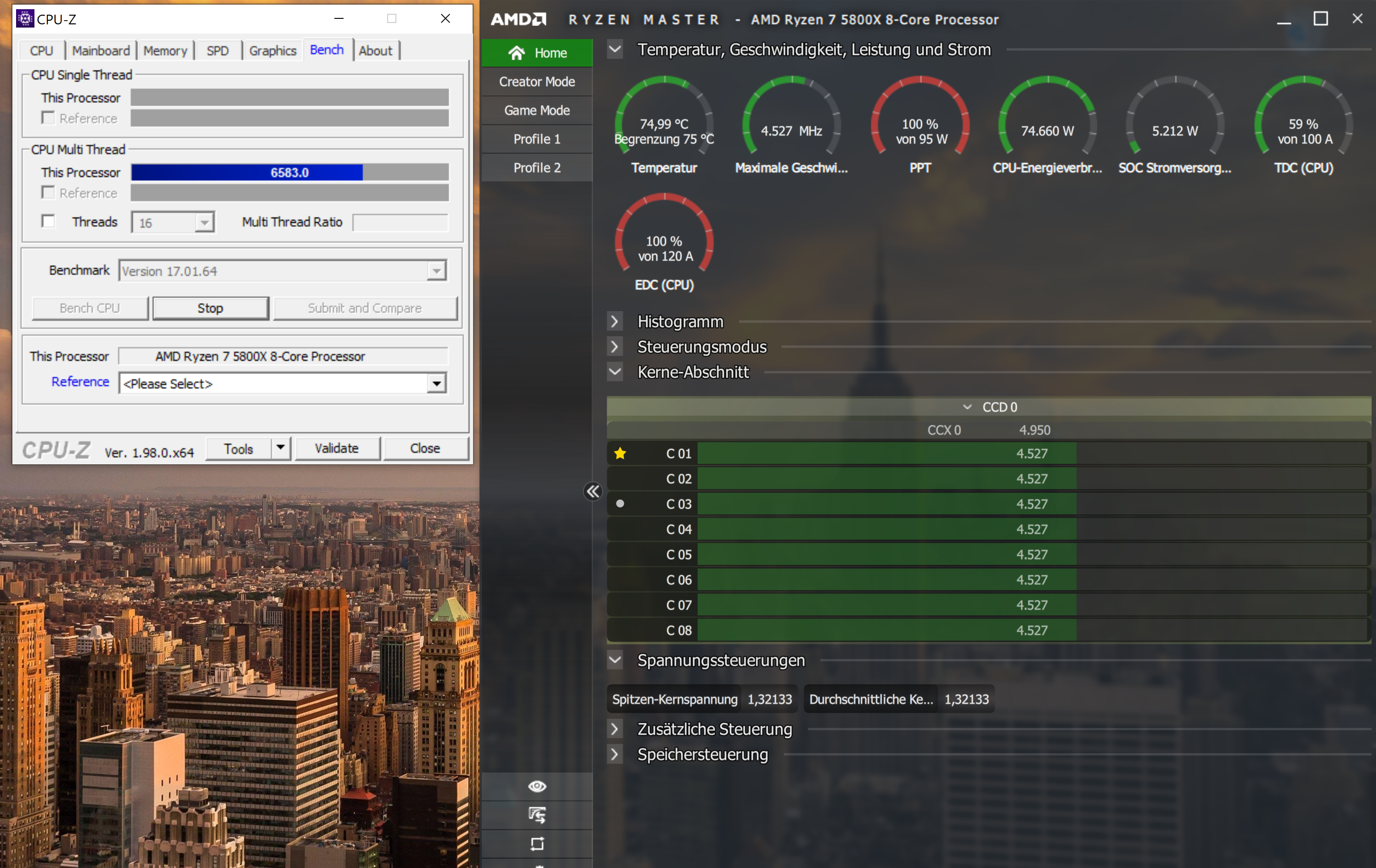Ich hab einen 5800x in einem mITX mit einem 30 Euro Kühler und erreiche nie Deine Temperaturen.Paul_32 schrieb:In CB erreiche ich die 90 Grad sehr schnell und beim zocken liege ich so bei 75 Grad mit einer AIO (NZXT Kraken X53 240mm)