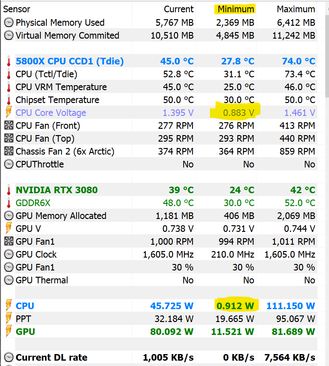 Was hast du denn genau eingestellt, dass deine CPU idle so wenig Strom verbraucht? Meine saugt immer mindestens 30w, entsprechend hoch ist auch die idle-temperatur. Und dieses Verhalten ist unabhängig von pbo, curved optimiert oder nicht und auch board-unabhängig. Hatte diese cpu schon auf Gigabyte, msi sowie asus, x570 und b550.Kryss schrieb:Edit: