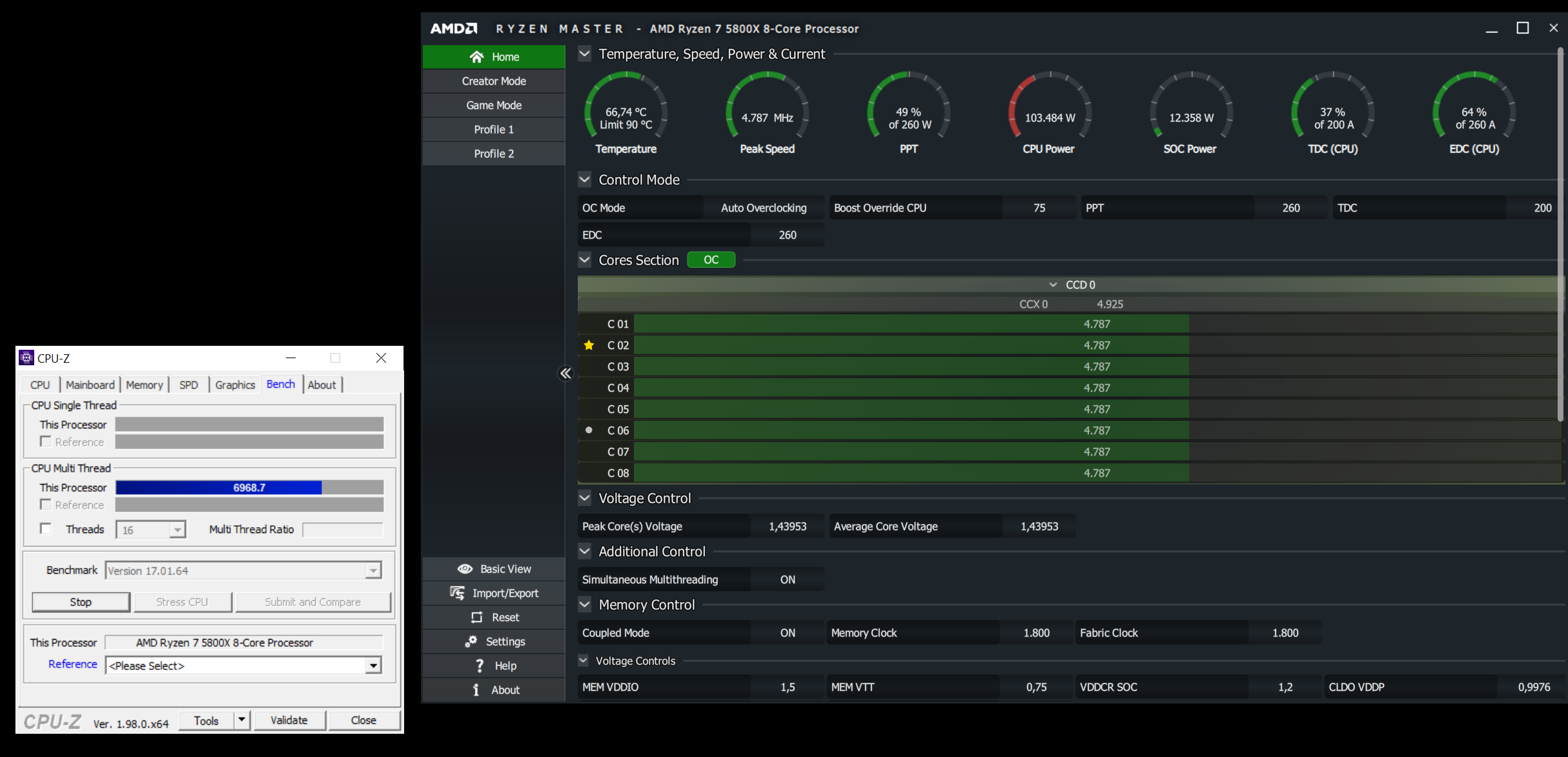 Kryss schrieb:Es gibt hier im Forum nach wie vor "Spezialisten", die immer noch darauf schwören, per overall Undervolt Zen3 einzustellen. Davon würde ich dir abraten weil das alle Spannungen über alle P-States betrifft und damit ganz leicht zu instabilität oder Clock Stretching (da werden dann allcore 4,8GHz angezeigt und die Leistung ist irgendwas zwischen 4,2 GHz und 4,4 GHz) führt. Und es ist einfach Ineffizient.