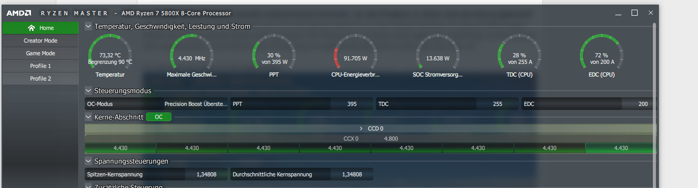 Folgendes Problem liegt vor. Ich habe mir neue Hardware für mein PC gekauft - Im Grunde alles außer meine Grafikkarte. Nun ist das so, das meine CPU sehr schnell heiß wird und bei der kleinsten "Anstregung" die Temparatur ansteigt. Im normal Betrieb ohne jegliche Anwendungen zu nutzen liegt, die CPU Temparatur bei 50-60 Grad. Öffne ich dann beispielsweise den Browser wird er sofort 5-10 Grad wärmer.. Bei Spielen steigt die Temparatur eigentlich immer bis auf 90 Grad - maximum, weiter geht die Temparatur nicht. Die CPU selber ist nie voll ausgelastet. Ich überwache die Temparatur und die Auslastung mit AMD Ryzen Master. Die Auslastung liegt meisten nur bei 35-45 Prozent aber die Temparatur liegt da schon bei 90 Grad. Wenn ich dann neben dem Spiel raustabbe und ich bspw. auf meinem zweiten Monitor was machen möchte, reagiert mein PC erstmal garnicht.. Tabs lassen sich nicht verschieben oder Anwendungen lassen sich nicht öffen.. (das Spiel lässt sich aber wenn ich wieder reintabbe flüssig spielen - Dying Light 2) Um die Leistung meiner Cpu zu überprüfen, habe ich auch schon ein Benchmark23 Test durchlaufen wo der Score im Multicore bei 12500 lag und beim Singlecore 1300. Als Kühlung nutze ich die MSI Mag Coreliquid 240R Wasserkühlung. Alle Hardwareteile außer meiner Grafikkarte sind nicht älter als 1. Woche (Kauf: 01.02.2022) Mein Anliegen: Woran könnte das Problem liegen, dass die CPU so hoch mit der Temparatur geht. Ich hab natürlich schon viel gelesen, dass der Ryzen 5800x sehr schnell heißen werden soll. Nur das die so schnell heiß wird und mehr oder weniger nicht seine Leistung bring, kenn ich so nicht. Da lief mein AMD Ryzen 5 2600 viel flüssiger vorher.