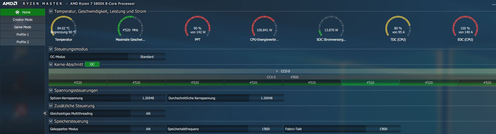 Porky Pig schrieb:das wäre mir viel zu heiß. Mein 5800X liegt unter Volllast bei 70C. Beim spielen noch darunter.